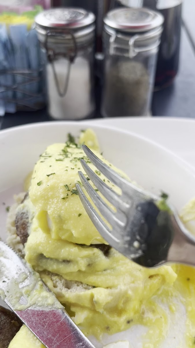 I absolutely love this place EggsStravaganza is hands down my favorite brunch spot. I love everything about it—the beautiful lighting, the wood tables and benches, and the way they showcase artwork you can actually purchase. It feels warm, creative, and welcoming. They’re locally owned by an immigrant family, and you can feel the heart in what they do. The ingredients are farm fresh, the menu is incredible, and their homemade caramel is my favorite latte flavor anywhere. I’ve been here more times than I can count and have tried almost everything on the menu. Today I’m having the smoked trout with avocado eggs Benedict (they make their own hollandaise!) with a side of fried green tomatoes. I don’t even know what the dipping sauce is for the tomatoes, but it tastes like a cloud imported from heaven. My sons can’t get enough of their French toast and crepes. This is truly a hidden gem we’ll keep coming back to as often as we can. Just be warned—there’s usually a line out the door on weekends, and it’s absolutely worth the wait.