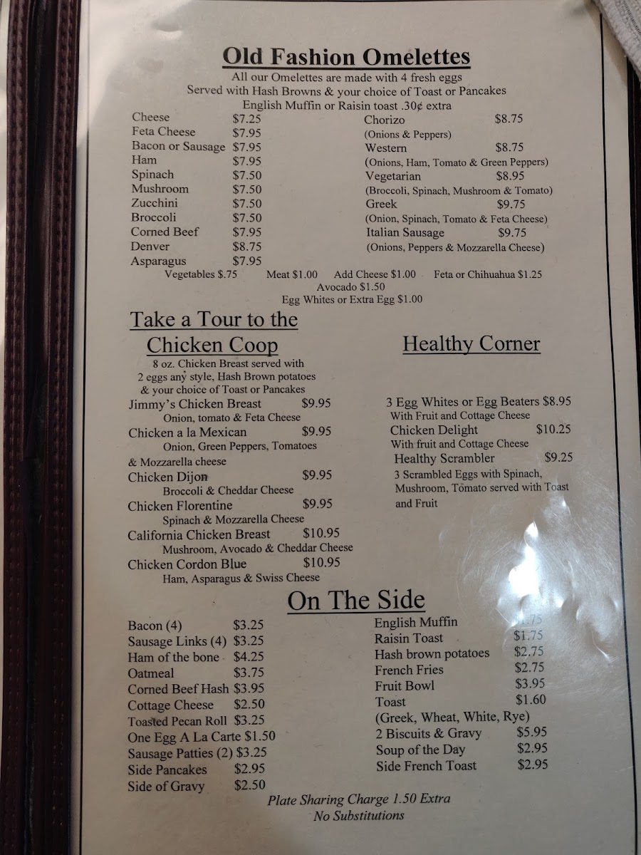 2 eggs any style, 2 bacon, 2 sausage and French toast.