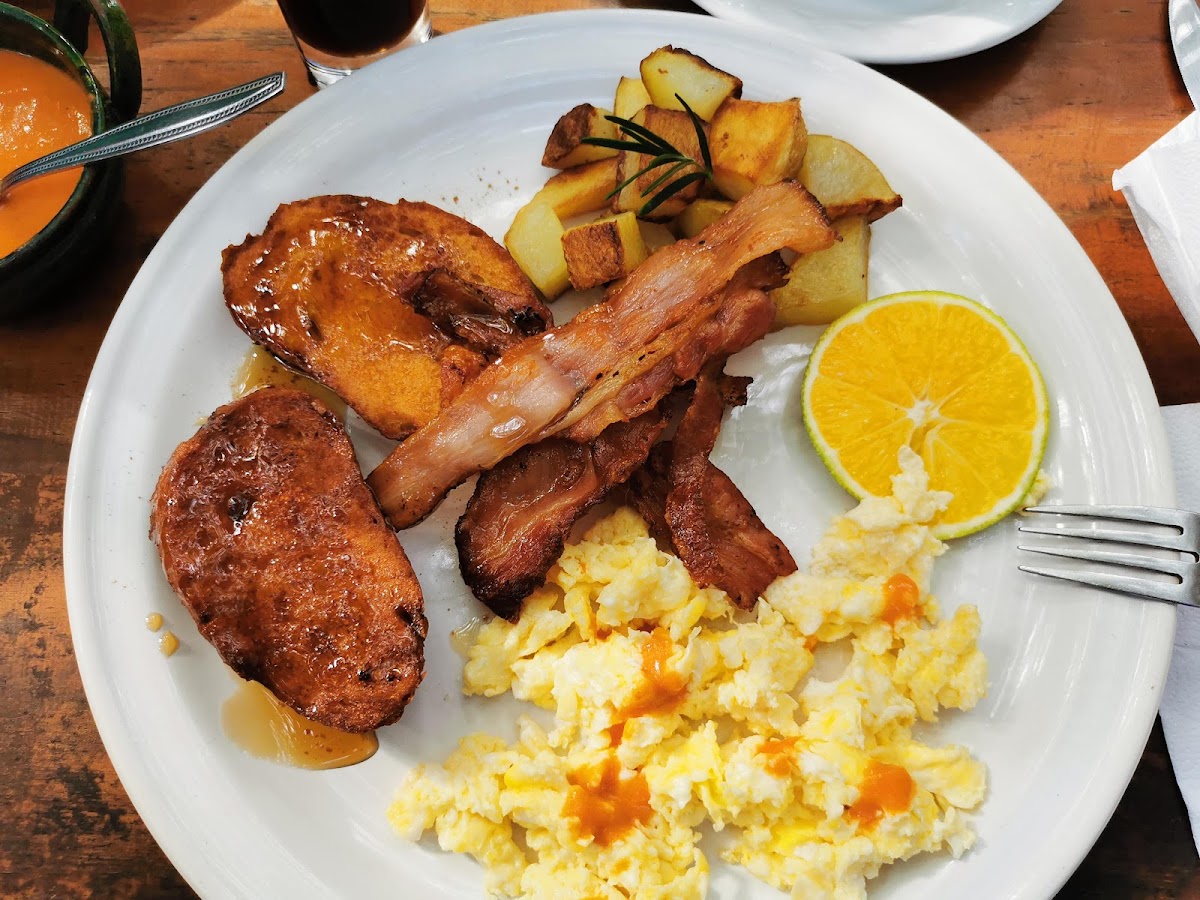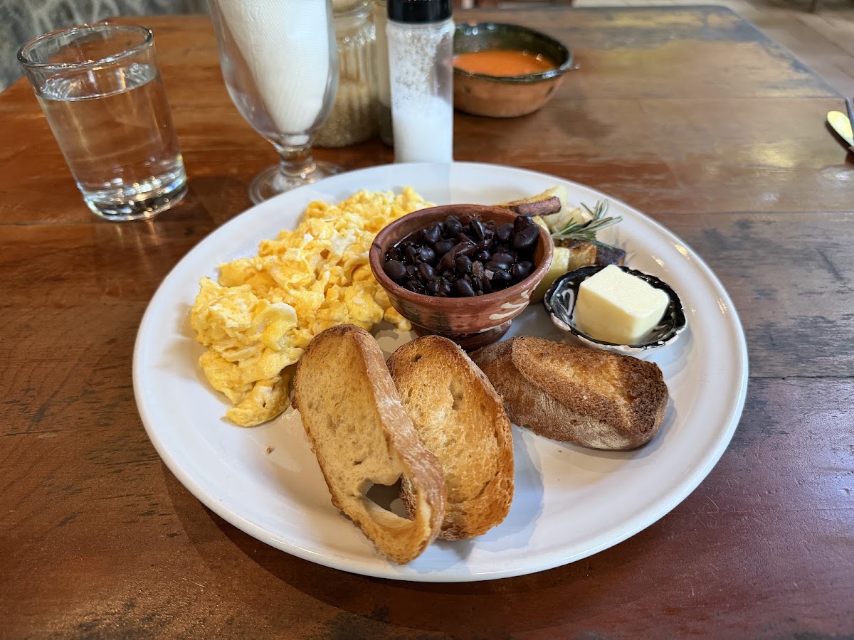 Great place! Quiet Forrest setting . Eaten here many times . French toast is great. This time we had “Chili con Carne” which was great and also spicy ! Also had “Huevos Divorciada” which was also great . Really like their salsa verde, Bring some insect repellent.