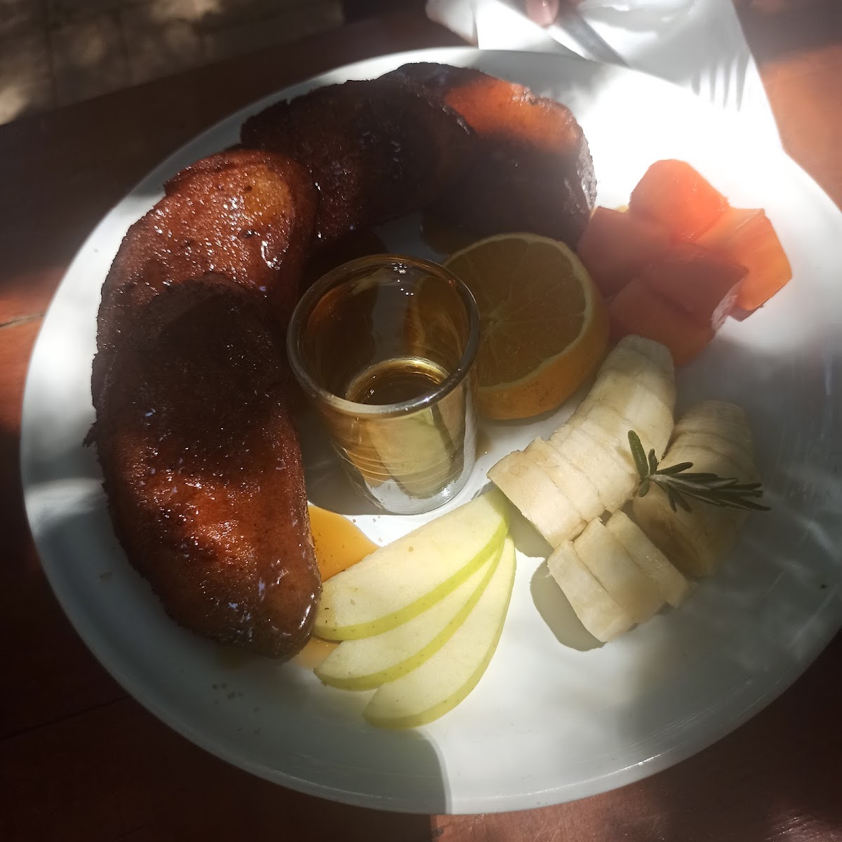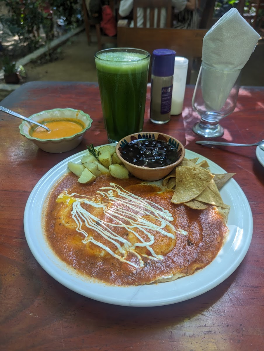 The best breakfast place in Zipolite! I always get the omelet which is cooked perfect and comes with fresh warm toasted bread and potatoes. It's tucked back in a little garden so it can get buggy at times. The servers are nice but it would be even better if they smiled more/seemed happier. Overall great food and great atmosphere!