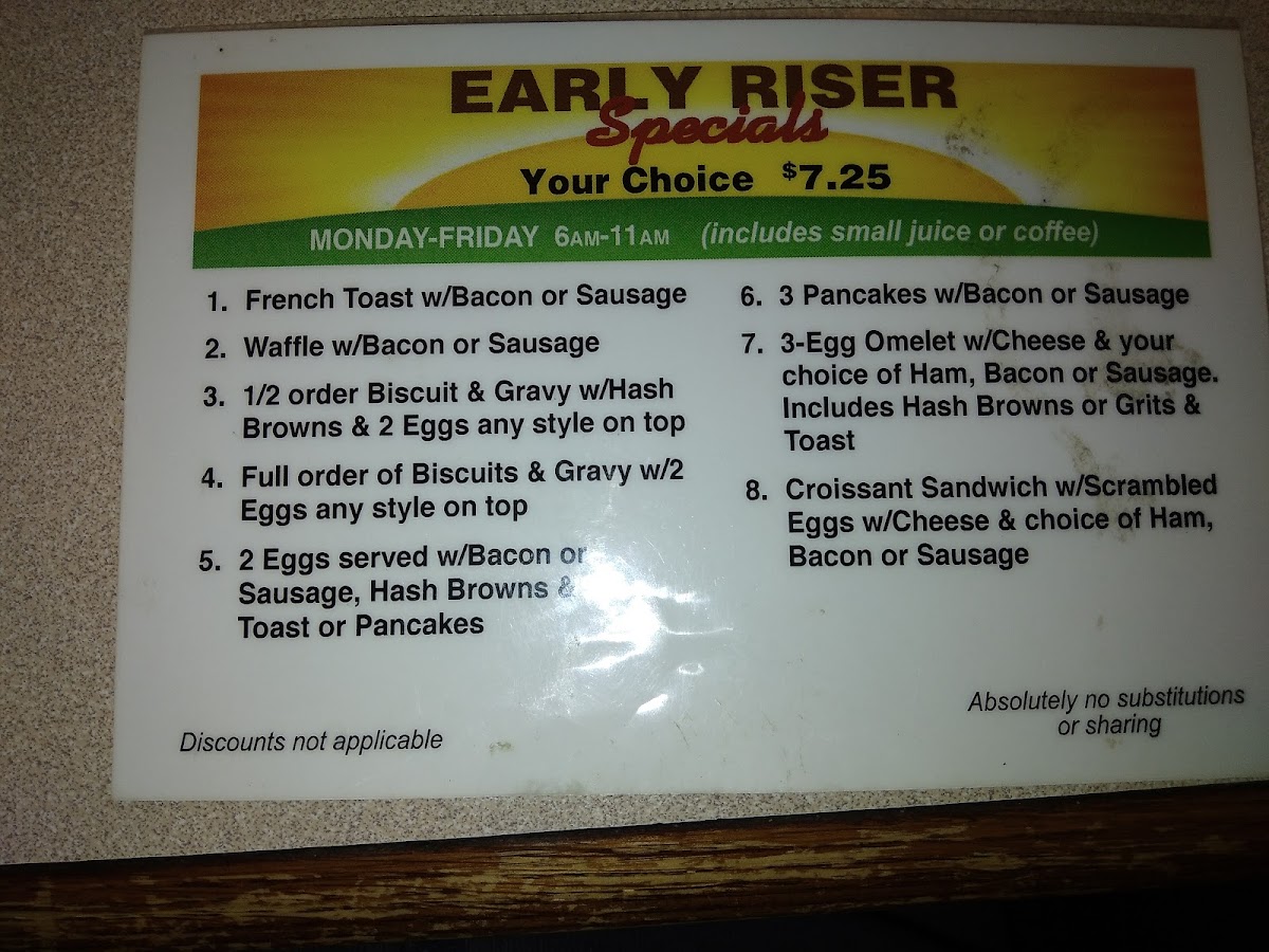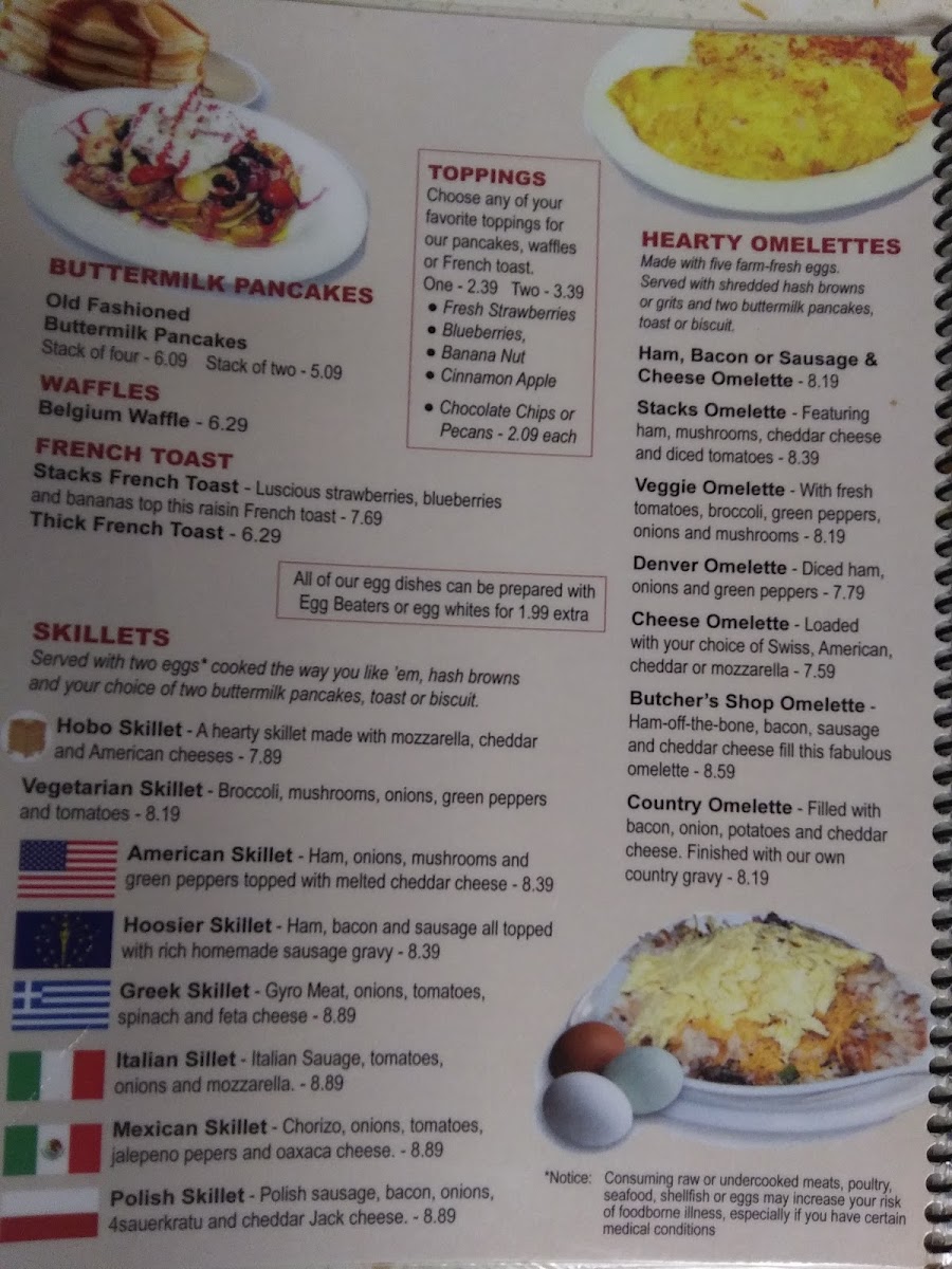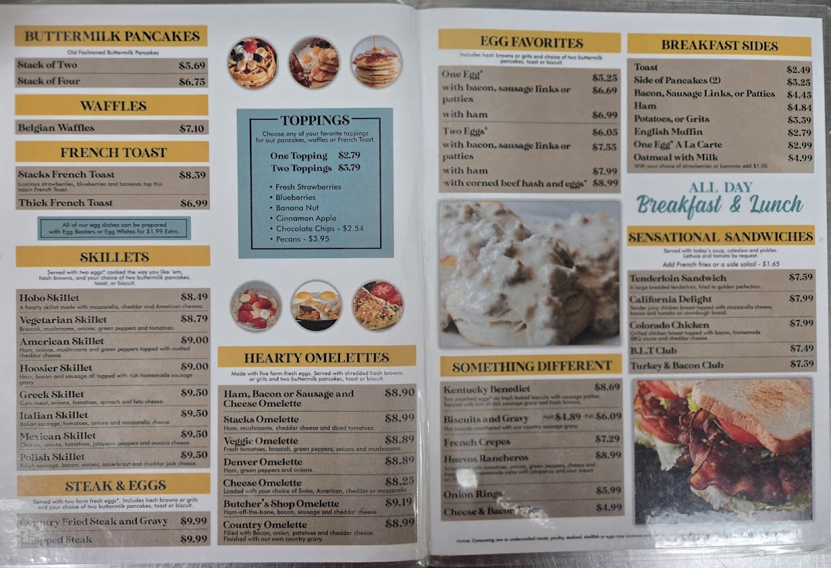 Ham off the bone, bacon, sausage and cheddar cheese. Served with hashbrowns and your choice of toast or biscuit