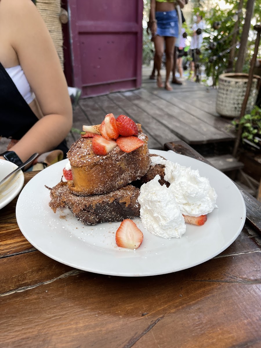 my favorite breakfast in Playa and also the best french toast i’ve ever had in my life! You cannot go wrong with anything but my favorites were the Florentina, french toast, and amazing amazing coffee. also, the dressing with the salad they give you with your meal is soooo good. staff is always so friendly too.