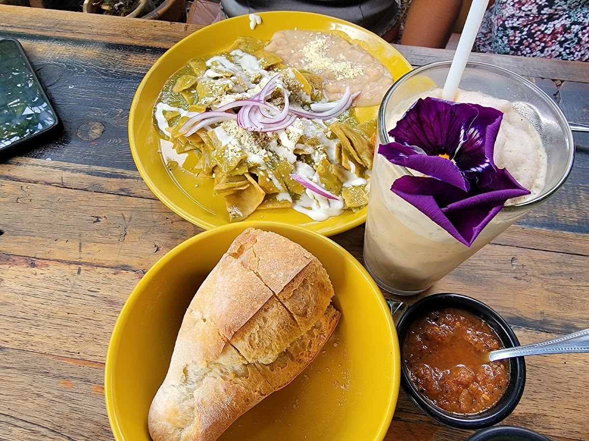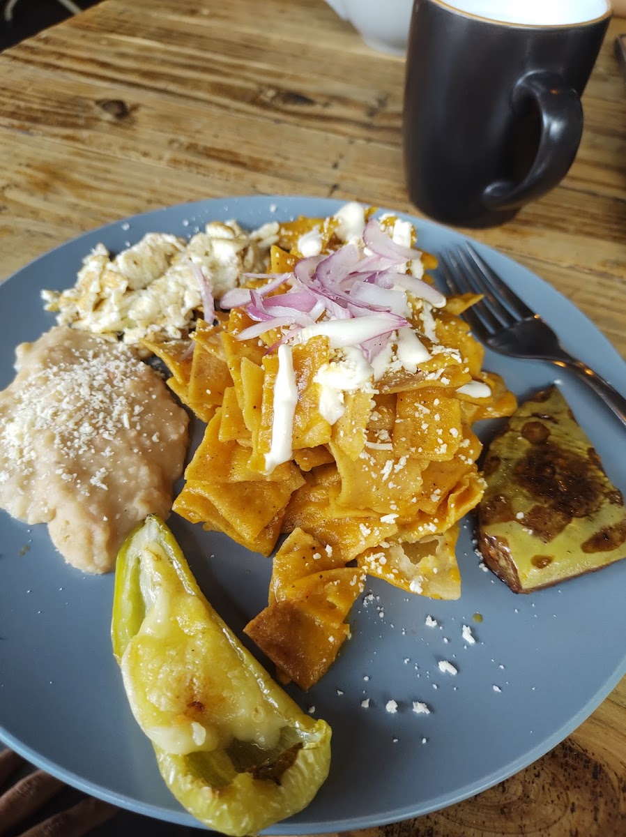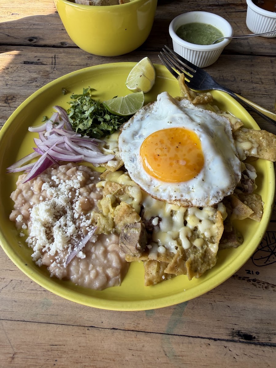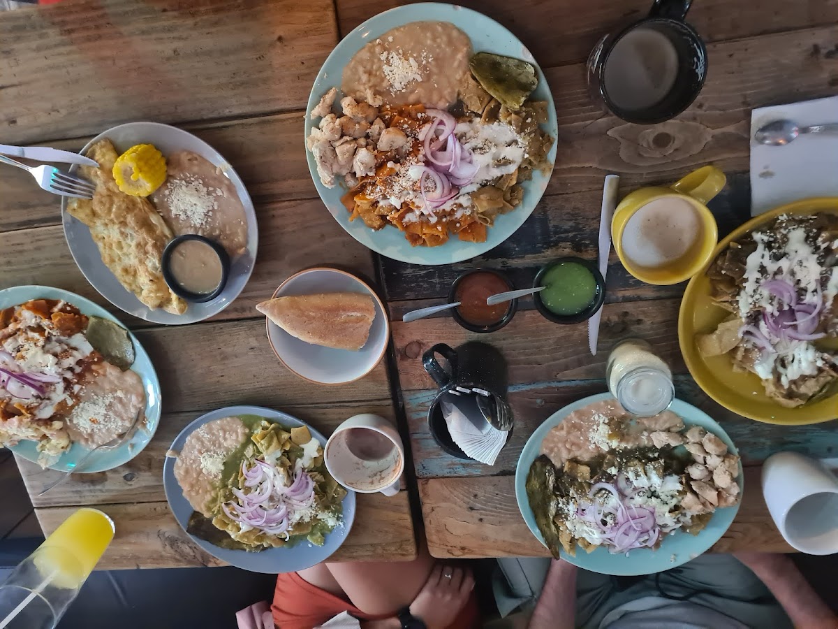 First time here and I love it ! 100% recommend this place. The food is really good and delicious. We had chilaquiles ceniza and chilaquiles with mole. Also the capuccino and black latte. The waiters were super nice, the place is comfy and fresh, really good decorations