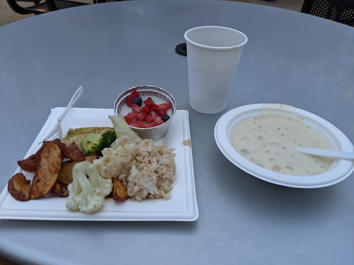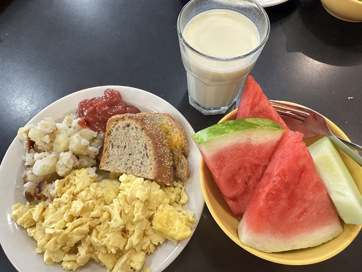 Dinning hall on campus. It was decent dorm food that offered a variety of choices for our orientation visit