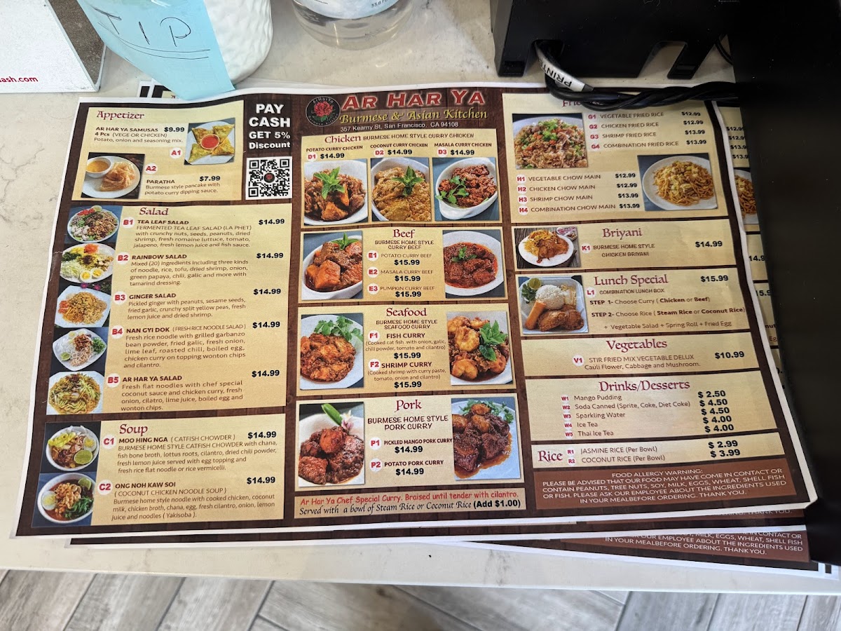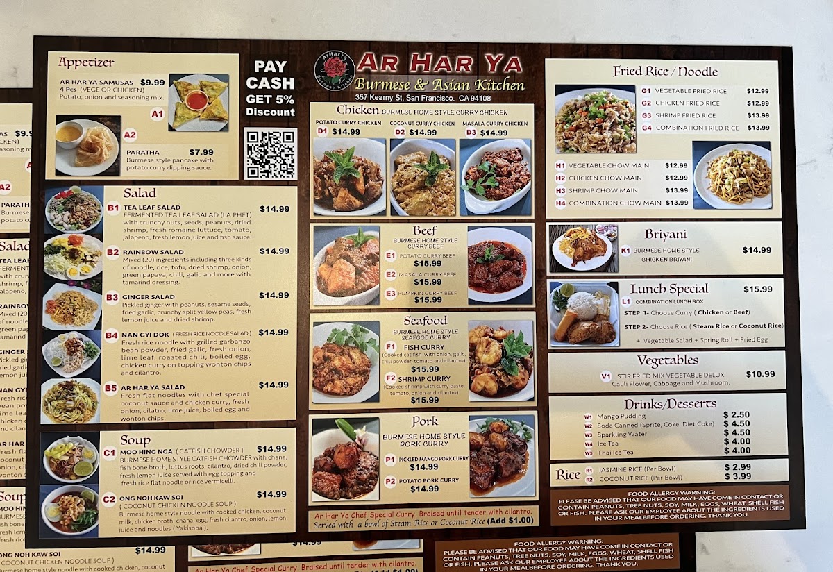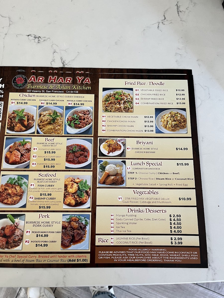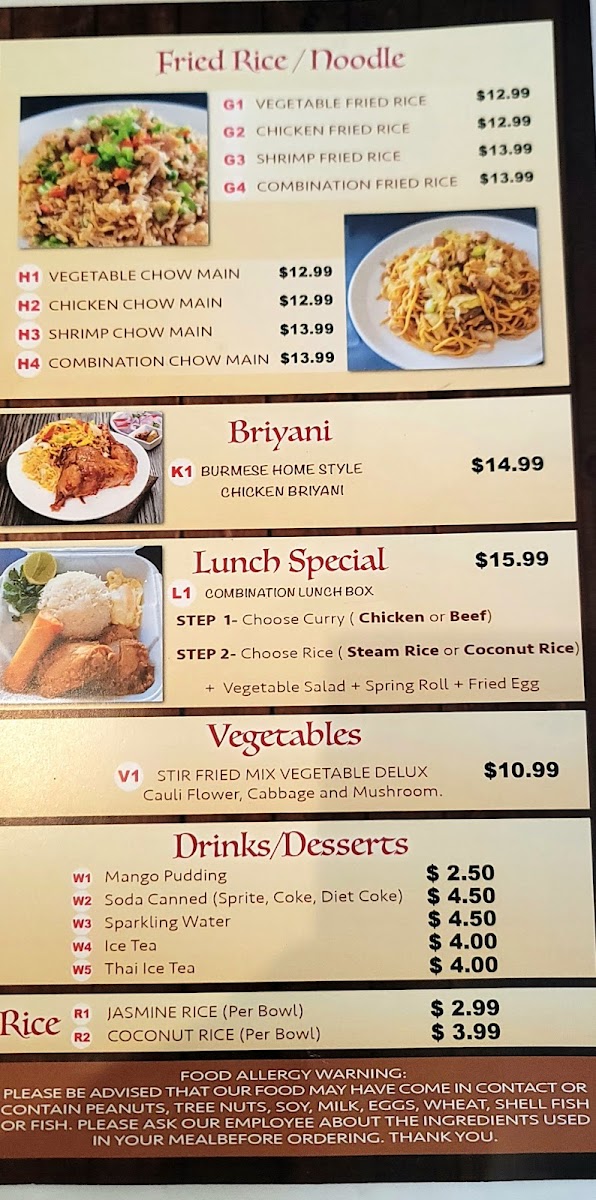 Choose curry (chicken or beef), choose rice (steamed rice or coconut rice), & vegetable salad, spring roll, fried egg.