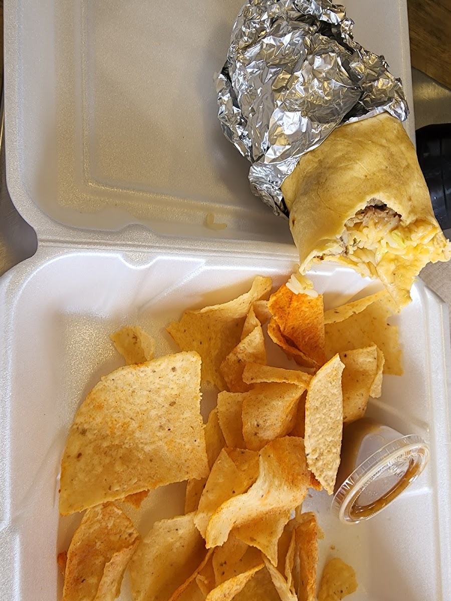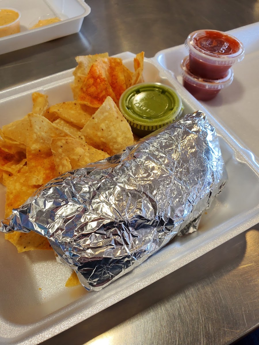 Good food with free refills on the soda. You choose the fixins for your burrito build and they taste fresh. The only down side was how much liquid came with the burrito, it ended up being really messy.