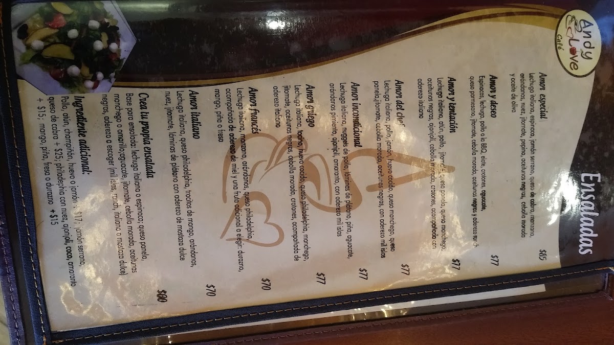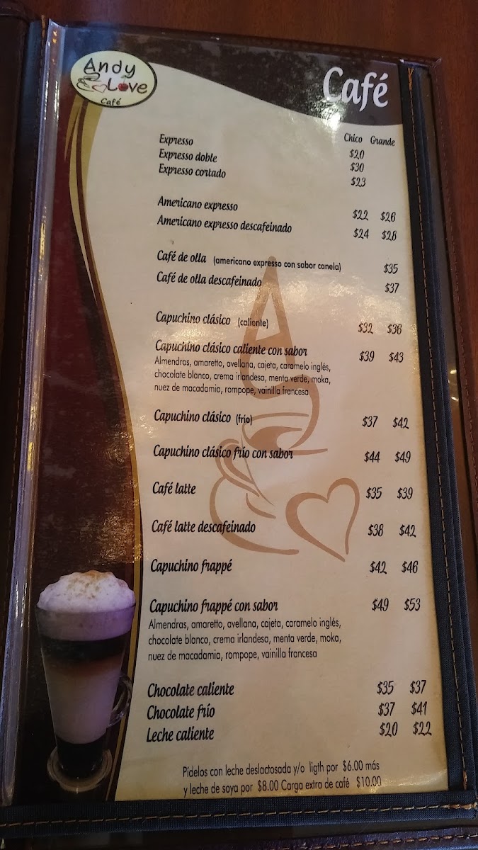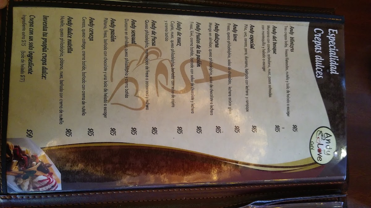 Andy Love Cafe Menu