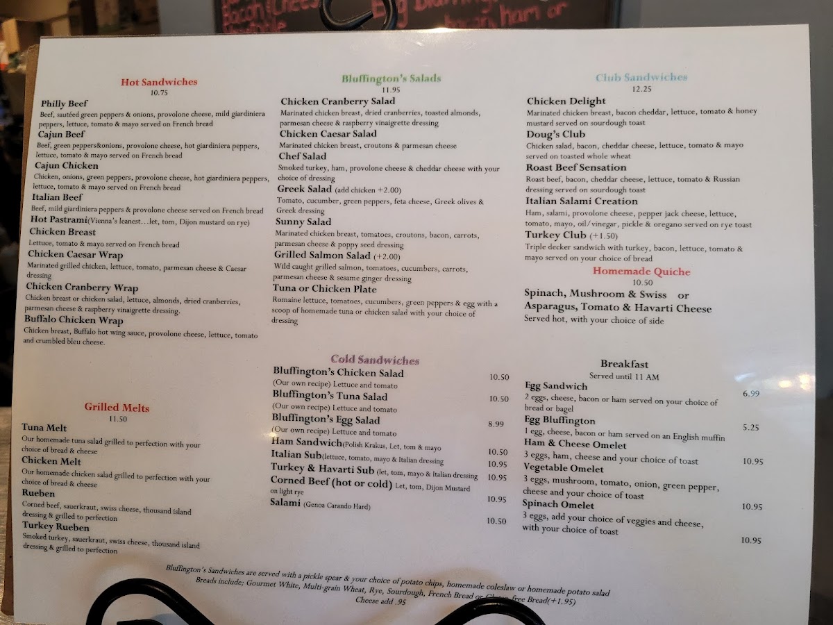 Chicken salad, bacon, cheddar cheese, lettuce, tomato, and mayonnaise served on toasted whole wheat bread. Served with a pickle spear and your choice of side.