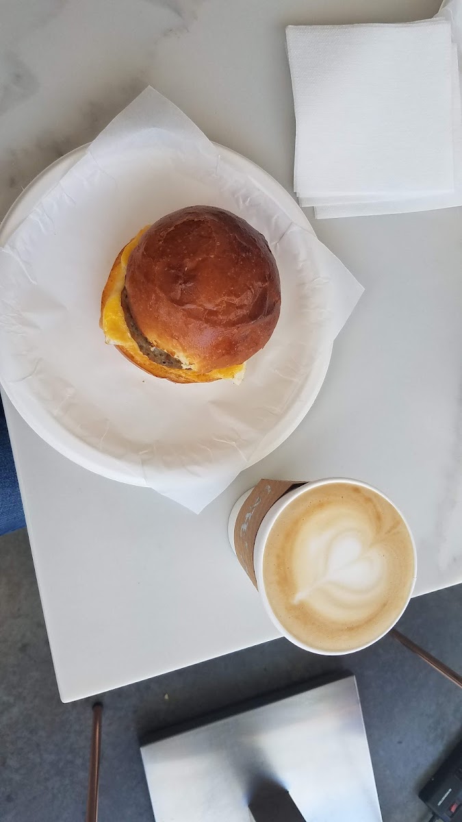 The lattes here are great and they ask you the level of sweetness you’d like. The financier pastries are a nice treat and also don’t taste as if they were loaded with sugar. I had the turkey, egg, and cheese sandwich and it was delicious! The staff always welcomes you and they also say goodbye when you leave. Atmosphere is pretty chill.