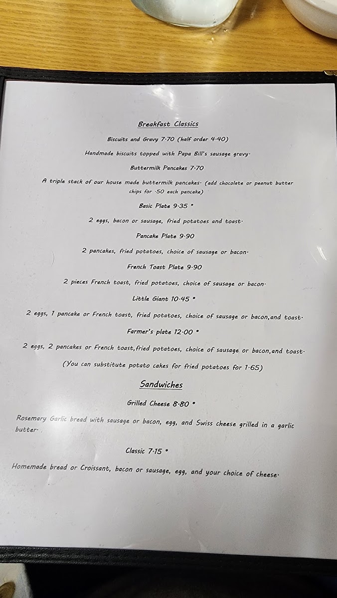 2 eggs, 2 pancakes or French toast, fried potatoes, choice of sausage or bacon, and toast