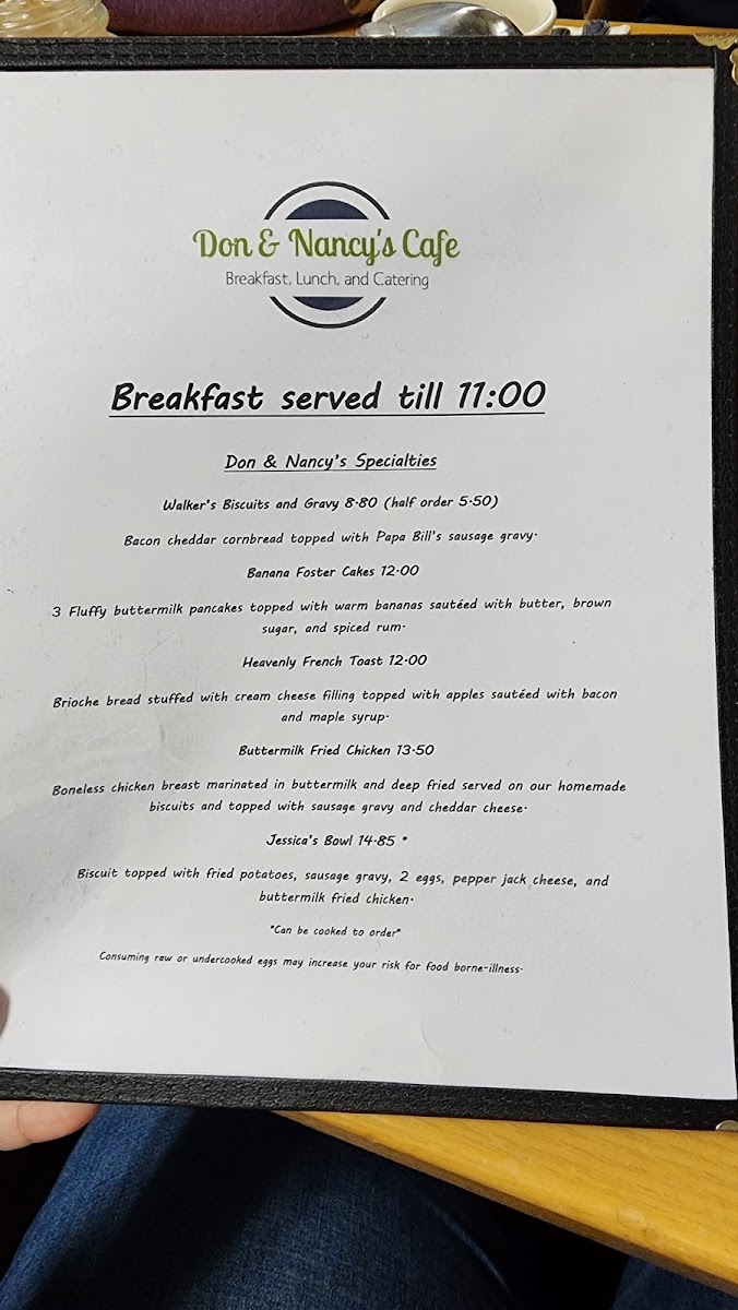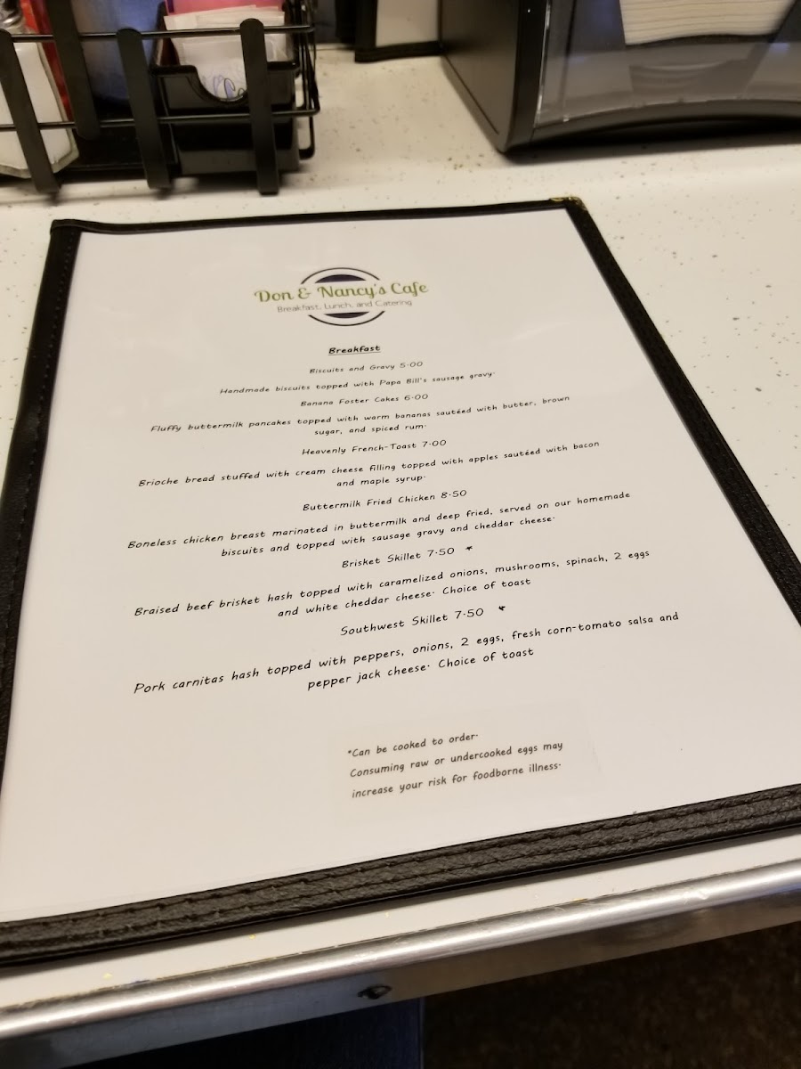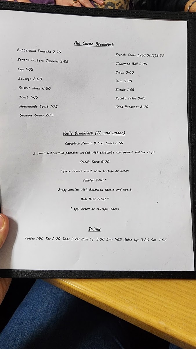 1 egg, pancake, fried potatoes, choice of sausage or bacon, and toast