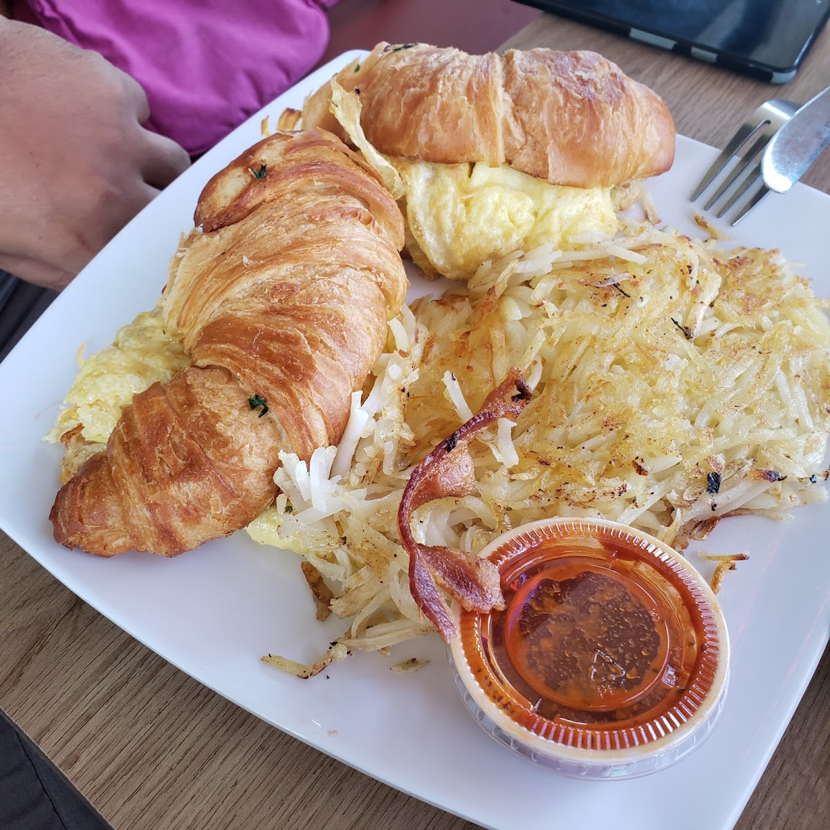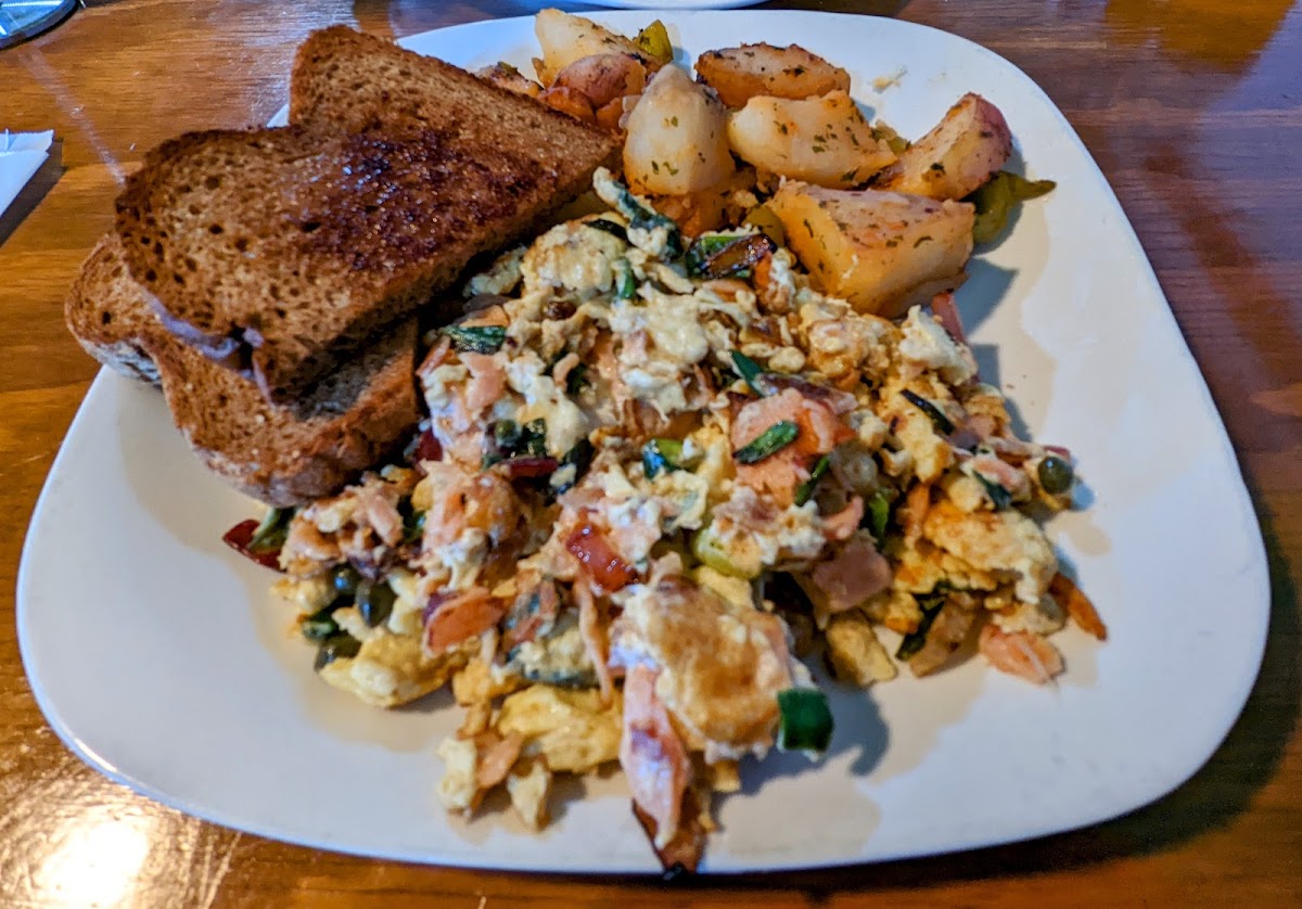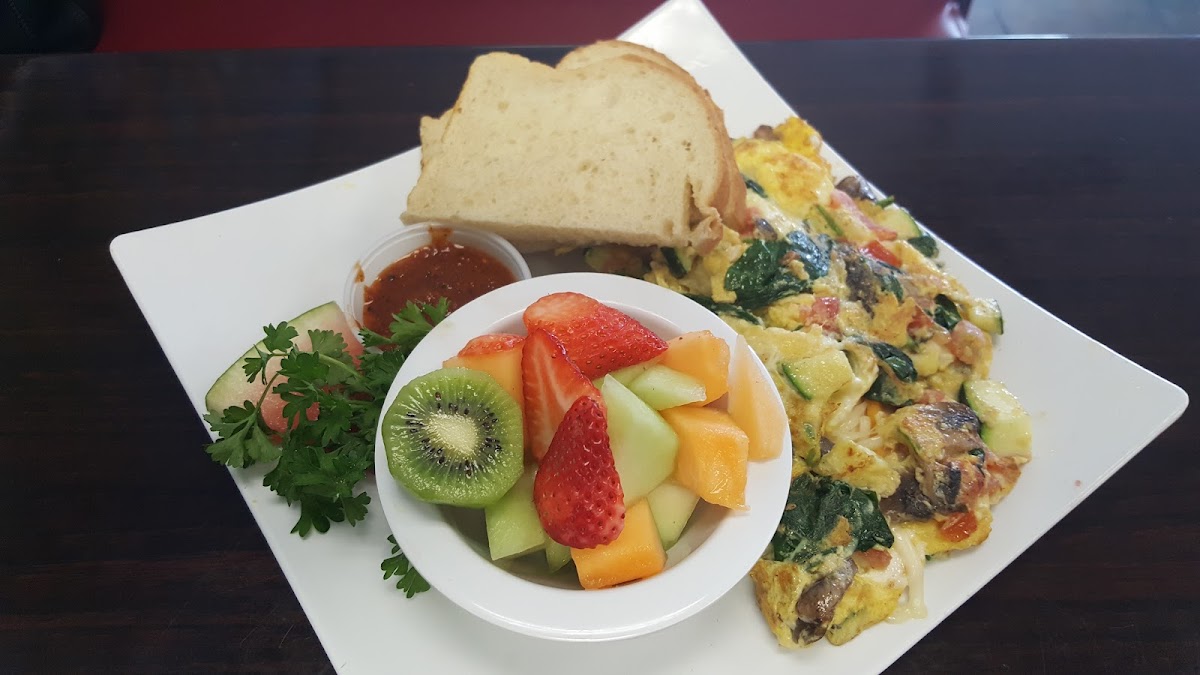 Spectacular breakfast options! Great juice and smoothie options. We dined inside and bought pancakes to go. Staff had the courteous forethought to bring the takeout to us just as we finished so the meal would travel as warm as possible. The Popeye omelette was delicious!
