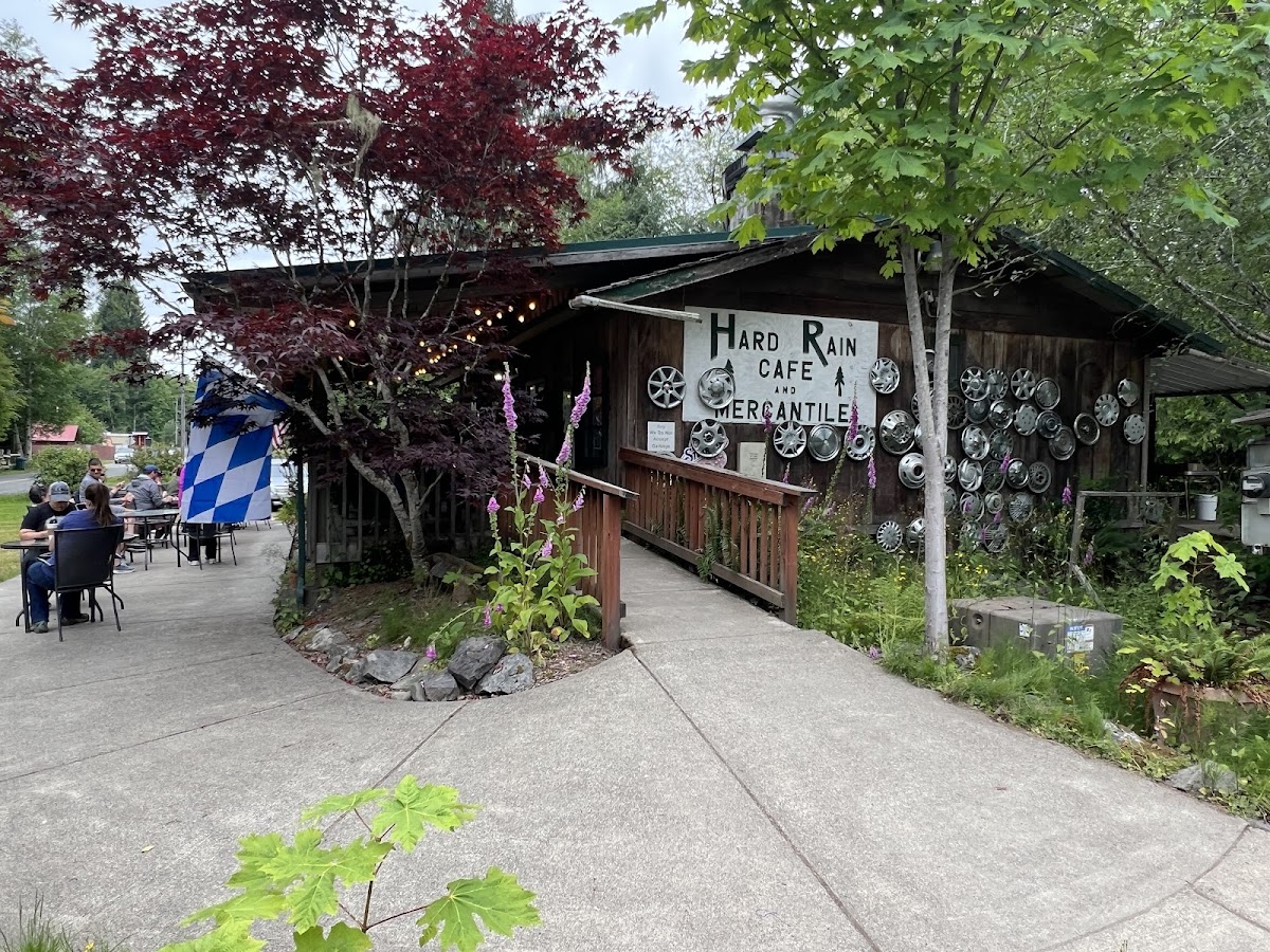 We camped at Hard Rain Cafe for 3 nights, as our base to traveling the area. We managed to get the site on the back, no.13, which was absolutely perfect. It's on the back of the property so far from the road (and anyway the entire place is very quiet at night). There are a lot of visitors to the cafe during the day, but the back sites are not really affected by it. There's a beautiful meadow just next to the site and the atmosphere is laid back and peaceful. The staff has been helpful and kind and we had awesome starlink reception. Bathrooms were clean and well kept. We had lunch at the cafe- nothing fancy but the food was fresh and good.