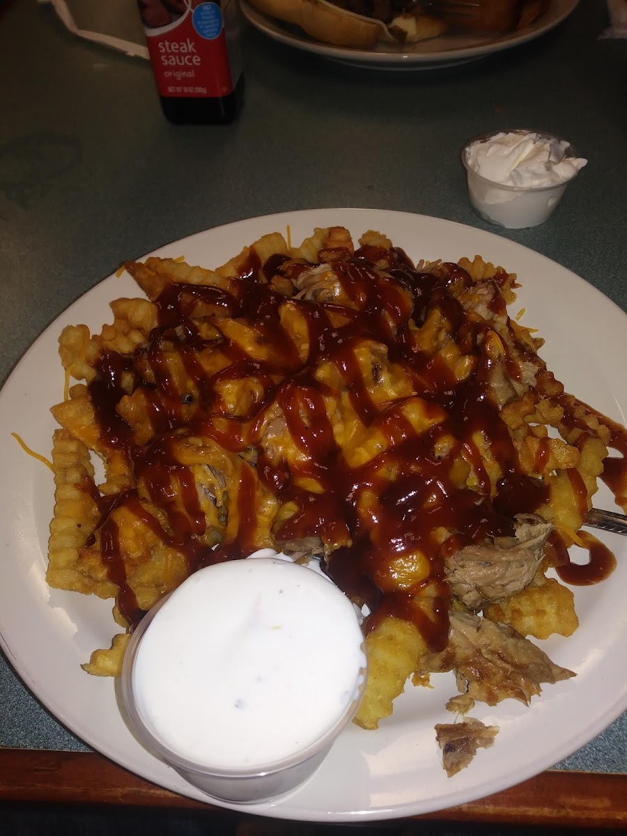 Cheap and the portions are huge!! Food was hot and delicious! Perfectly seasoned meals. Sweet and attentive staff! Quick with cooking too. I 100% recommend this place!! I am telling yall, the bbq fries with queso and bbq sauce is incredible!