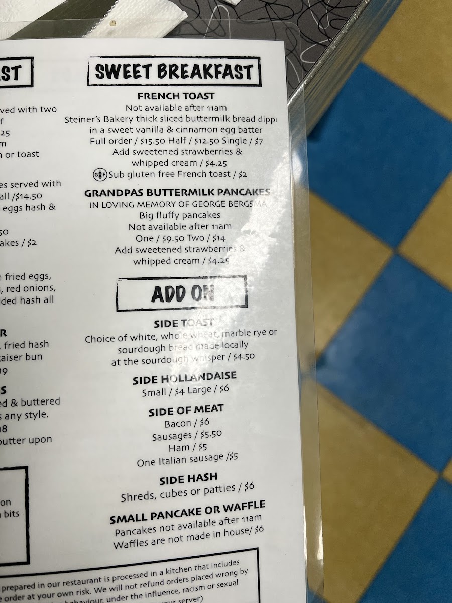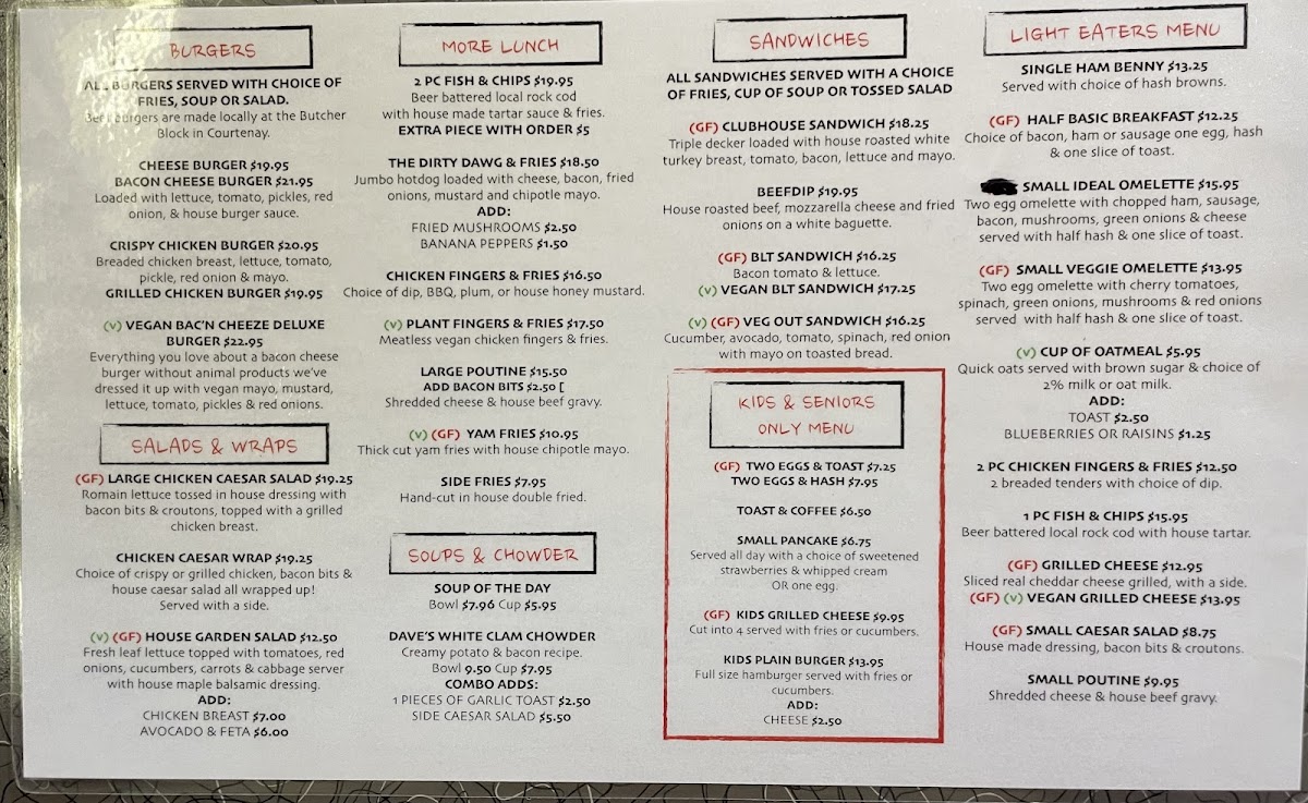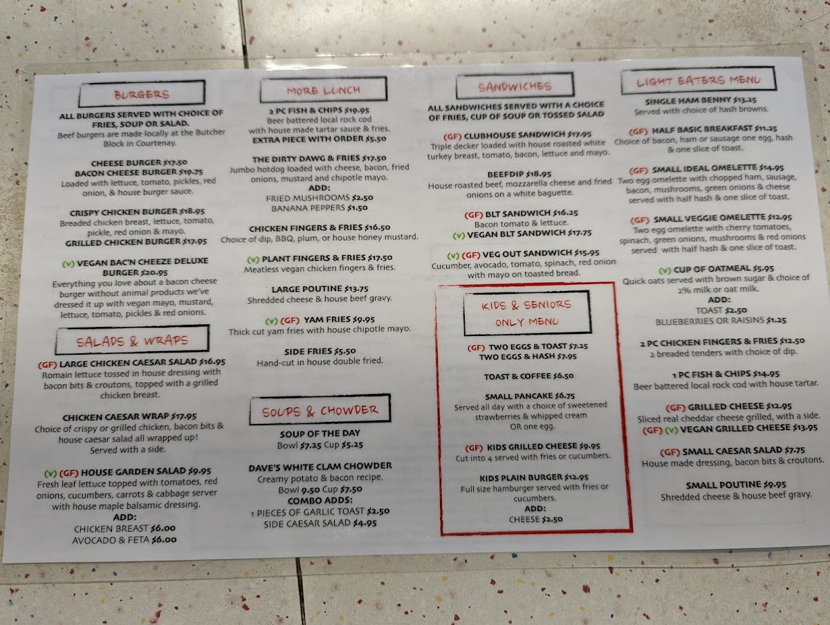 Kids & Seniors Only Menu