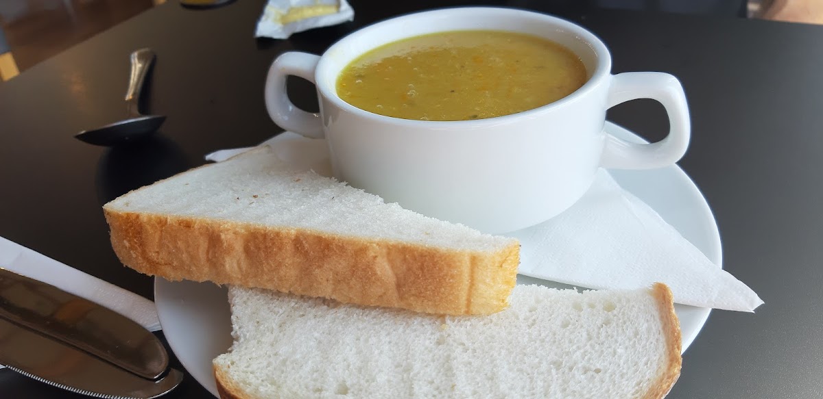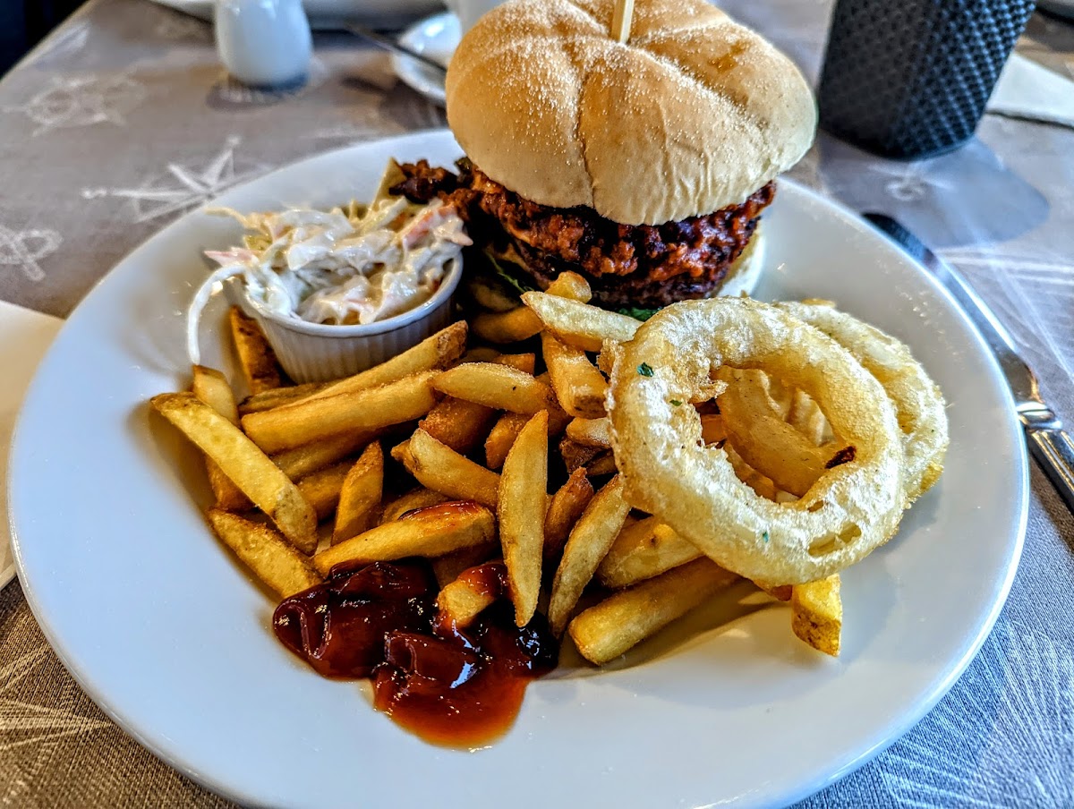 A wee gem I'll certainly visit again. We went for a spot of lunch whilst visiting the nearby museum, 5 mins away. It was a busy Saturday afternoon, but after a very short wait our party of 5 were accommodated and orders taken. Every dish that passed us looked fantastic, but I ordered the Puffer burger which was outstanding. Double burgers, bacon, cheese, jalapenos, special sauce, and absolutely one of the tastiest burgers I've ever had. My wife enjoyed the Vegan veg rice bowl , and my 7 year old son loved his lentil soup and bread. Great service, and I'll be back to try the yummy looking cakes