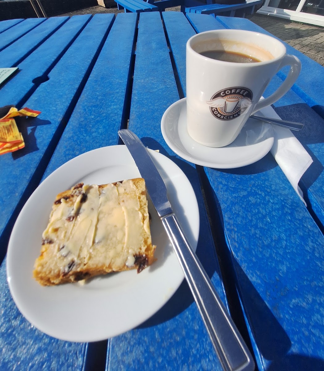 Great cafe on the harbour with lovely views of the water. Plenty of parking and toilets. Good choice of food and drinks on the menu from meals to light snacks and cakes! Very clean and spacious. Excellent service from the staff. Nice gift shop adjoining the cafe. Will definitely be back.