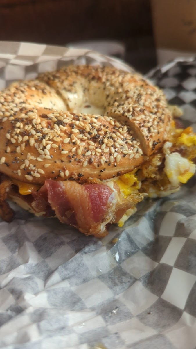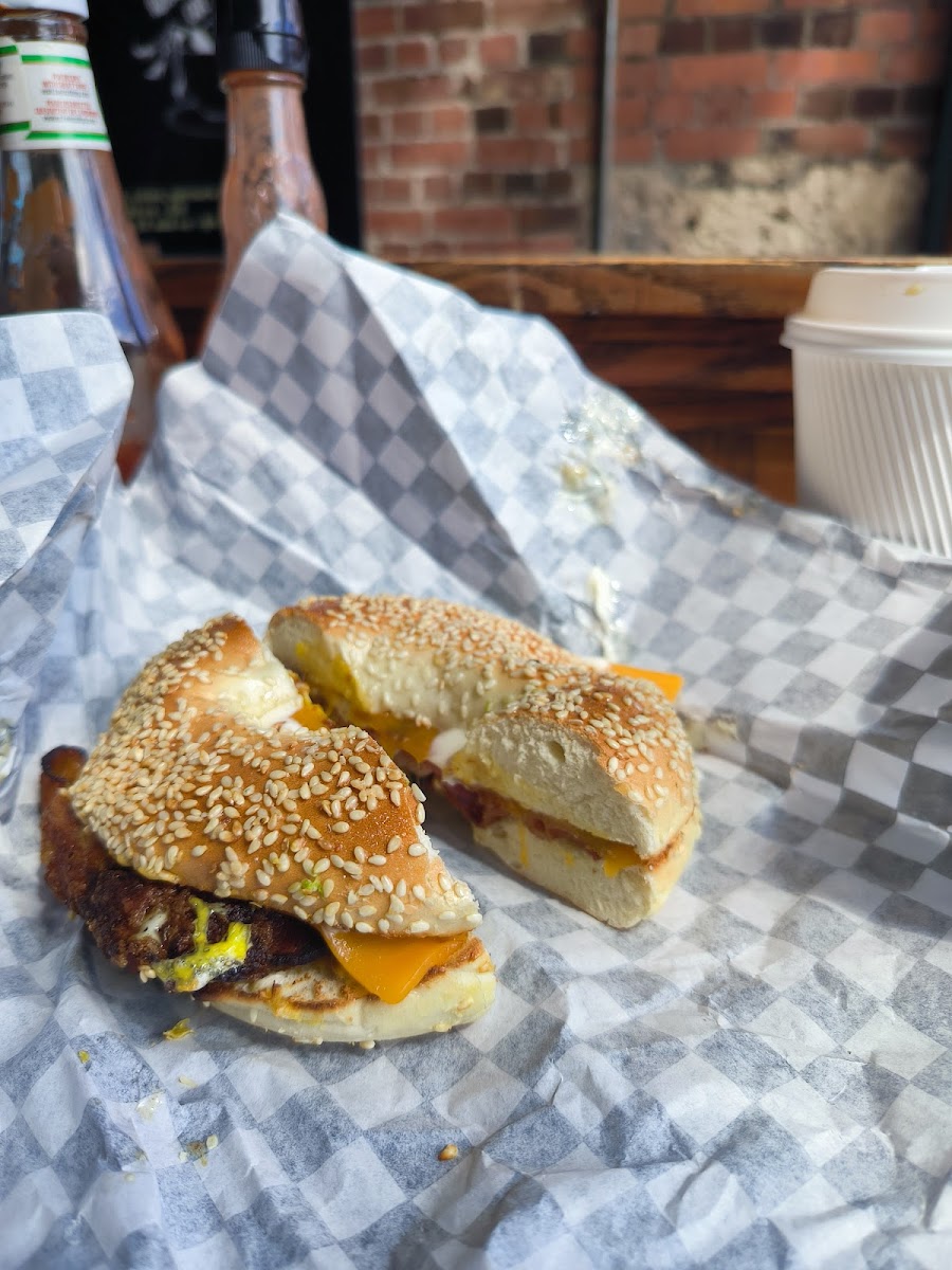 Been going here for years and the breakfast bagels always SLAP. My fav so far has been the peameal one (pictured). My friend who’s vegan often gets delish vegan sammies here too. Great local spot!
