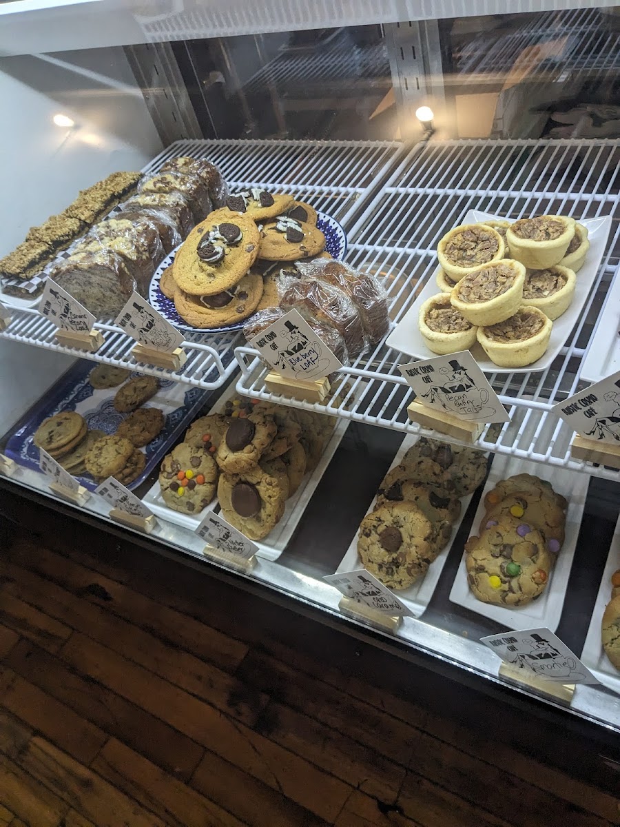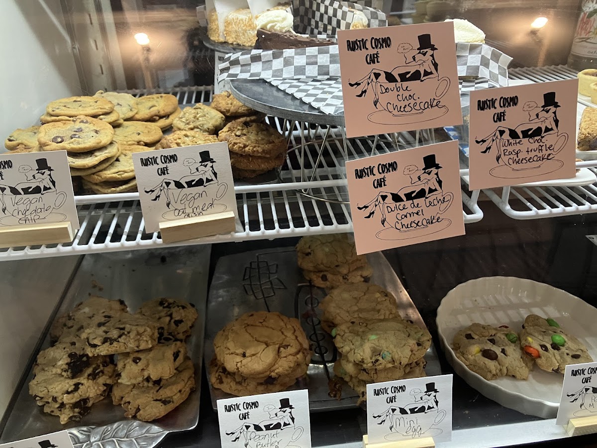 Great vibe if you are interested in places with character, vegan fare and Java. There are many items that are homemade, and the decor is definitely vintage with sensible stools. I had the pesto chicken, Asiago and spinach that was perfectly seasoned within a good portion of tasty home fries. My guest also had the raspberry chocolate cheesecake. Another fine rendition of wholesome baked goods for those in need of pampering. Drop Java is reasonable and customers are plenty at the lunch time crowd. Take out is the seemingly popular mode but the low row of seats will draw in the students. Love the cookies and Java hits the spot. There is a cooler for drinks, a freezer for Honey ice cream.