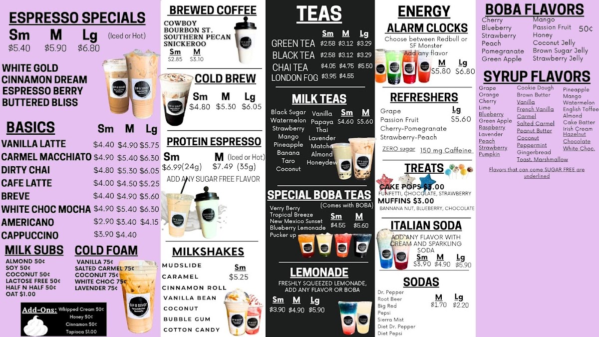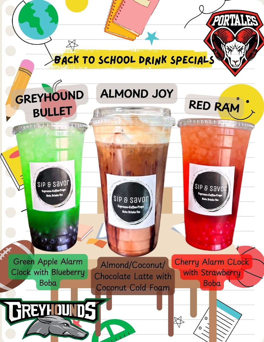 Choose between these delicious special teas, our Tropical Breeze contains strawberry/peach. Our Pucker Up contains green apple/lemonade. Our NM Sunset contains mango/raspberry. Our Blueberry Green Tea Lemonade contains blueberry/green tea/lemonade. Each of these come with boba.