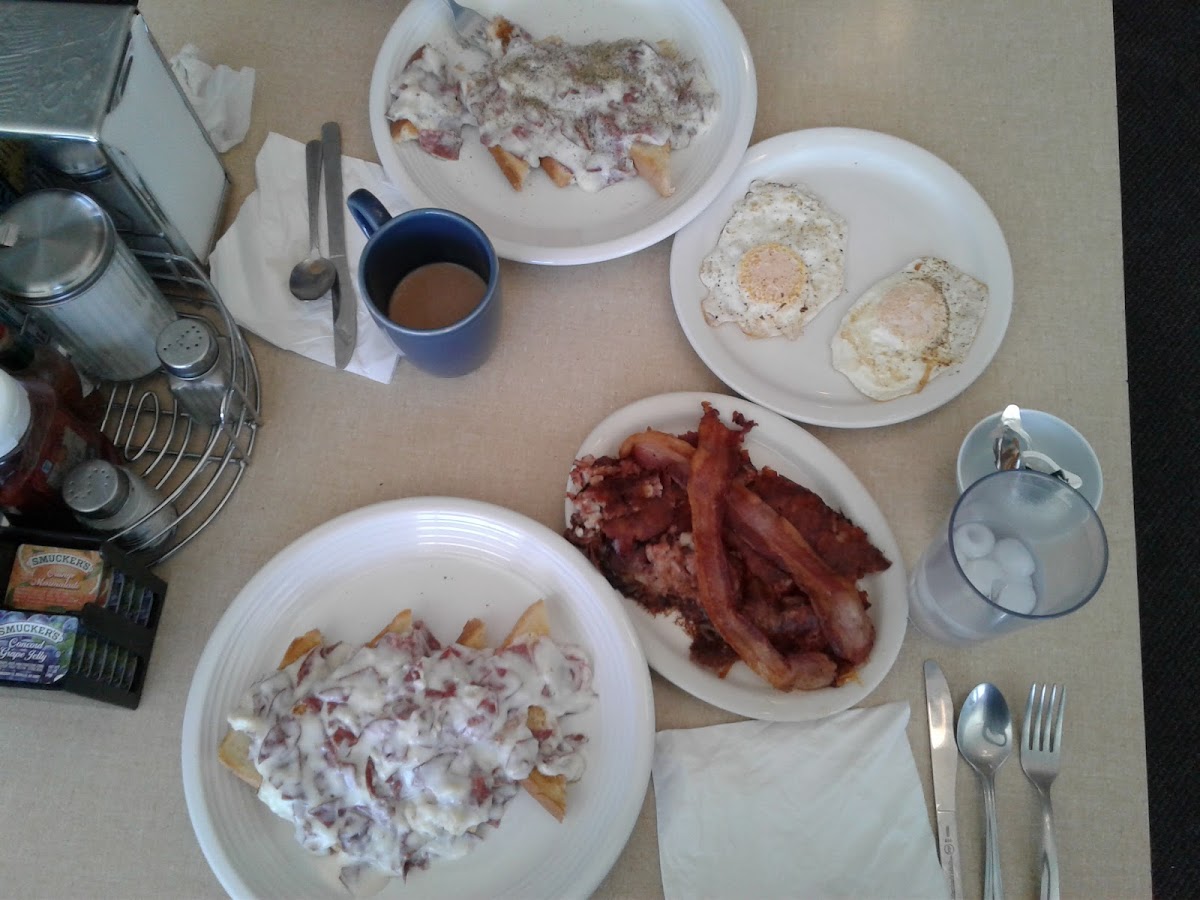 Friendly place, prices were good and plate sizes really good. Everything was done well to my order. I ordered the combo. Two eggs, made to order, hash browns, 2 bacon, corn beef hash and toast. Well done