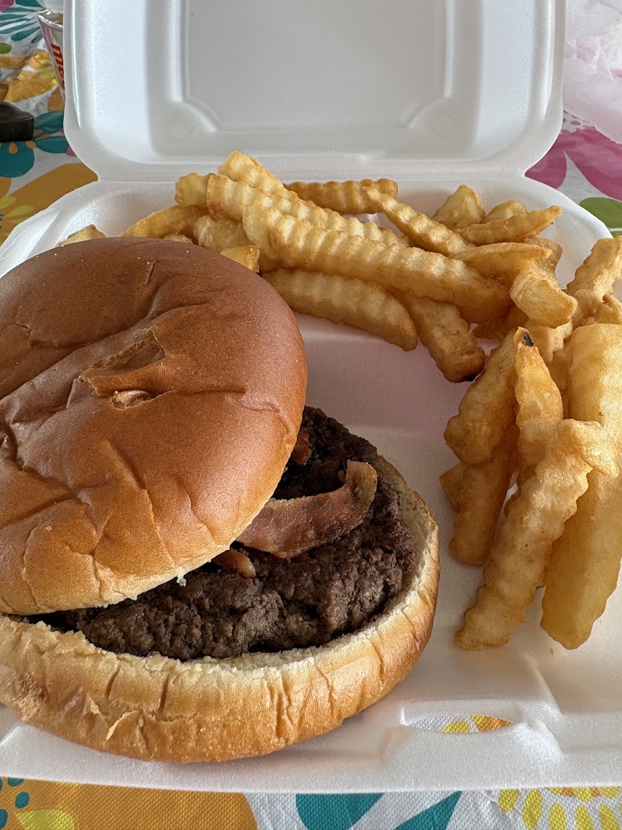 I was in town and wanted to try this place. The food was good. A little expensive. $12.83 for a bacon burger and fries.