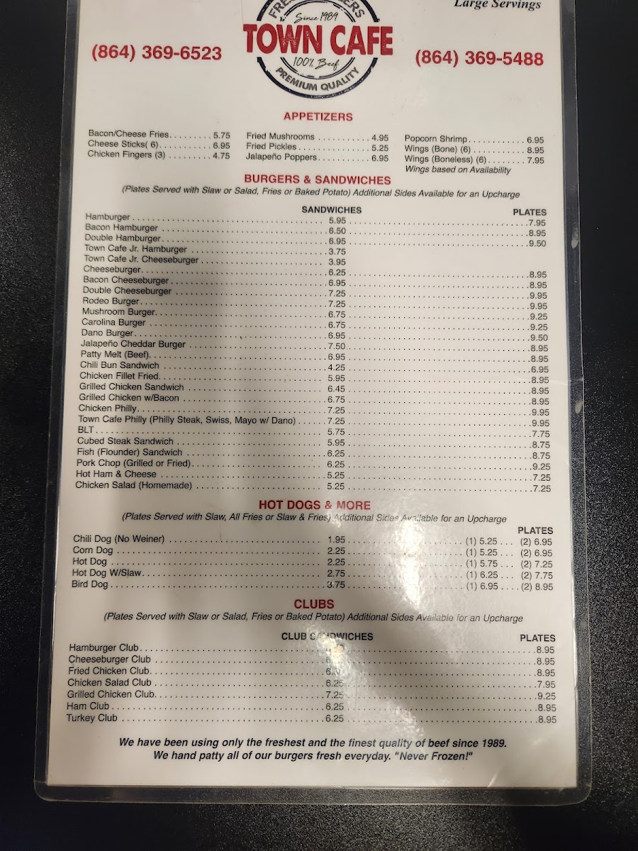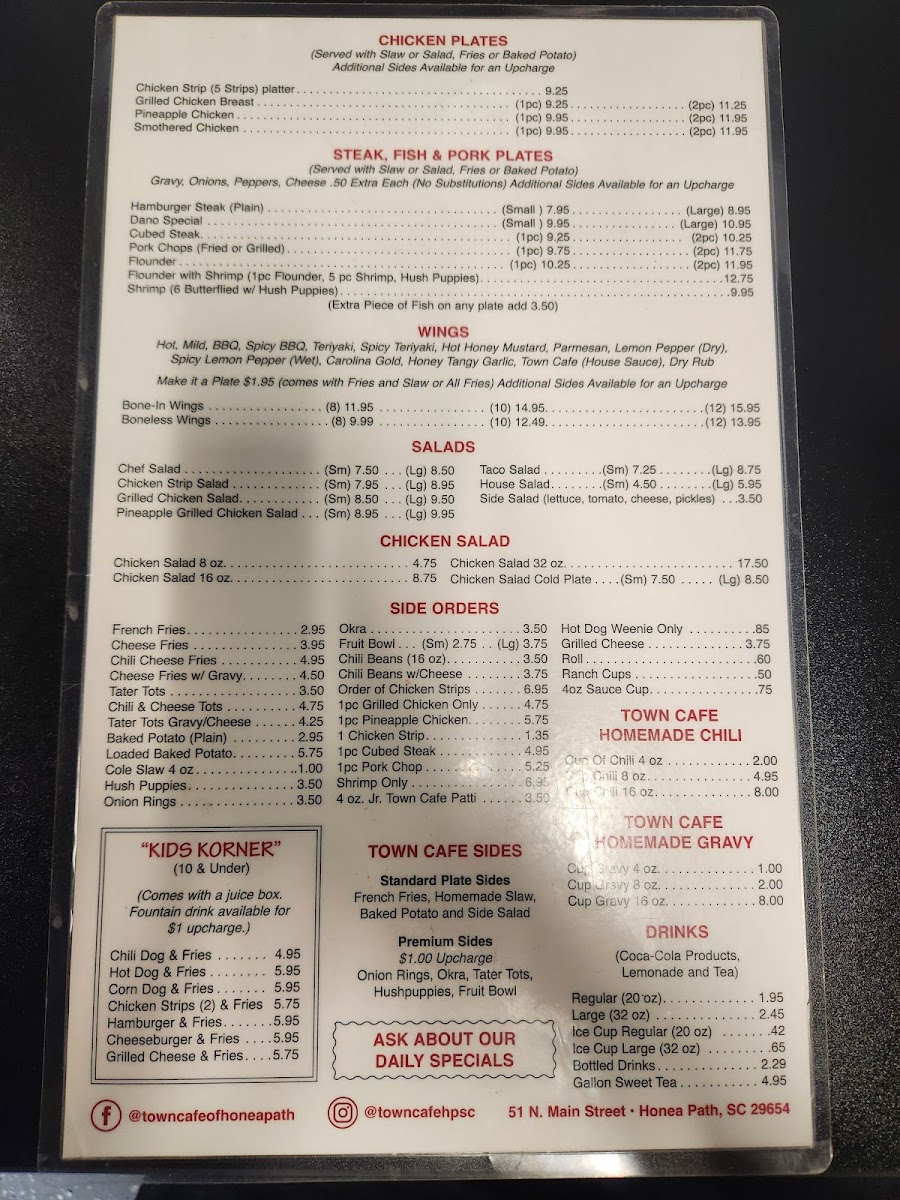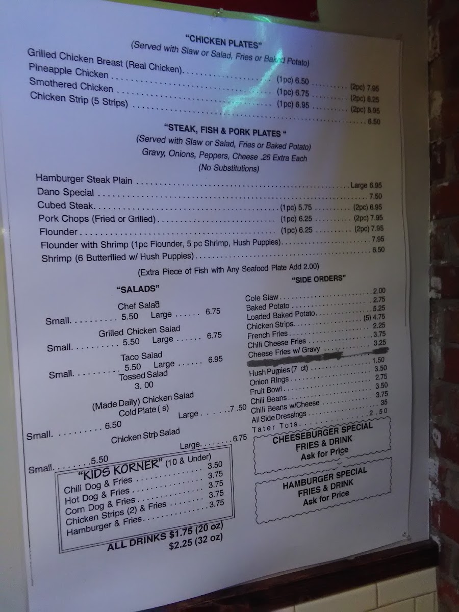 Served with slaw or salad, fries or baked potato. Other sides are available at an up charge.