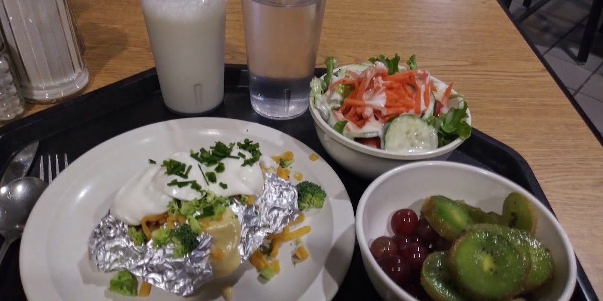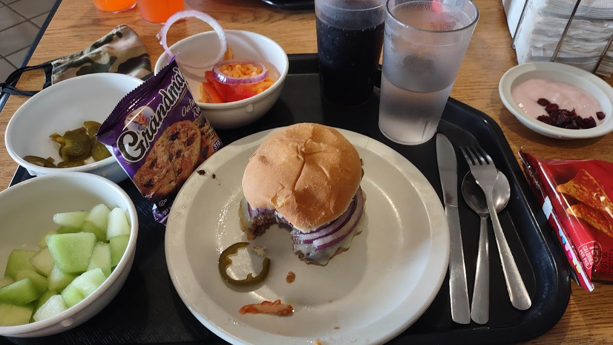 It's a dfac, you'll get what you expect, a meal. Don't expect anything extreme. They had chips and hot sauce, overall, good meal.