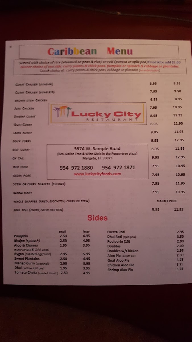 Tender chicken pieces in curry sauce with bone. Comes with rice or rot,i curry potato and chickpeas, cabbage, or plantains.