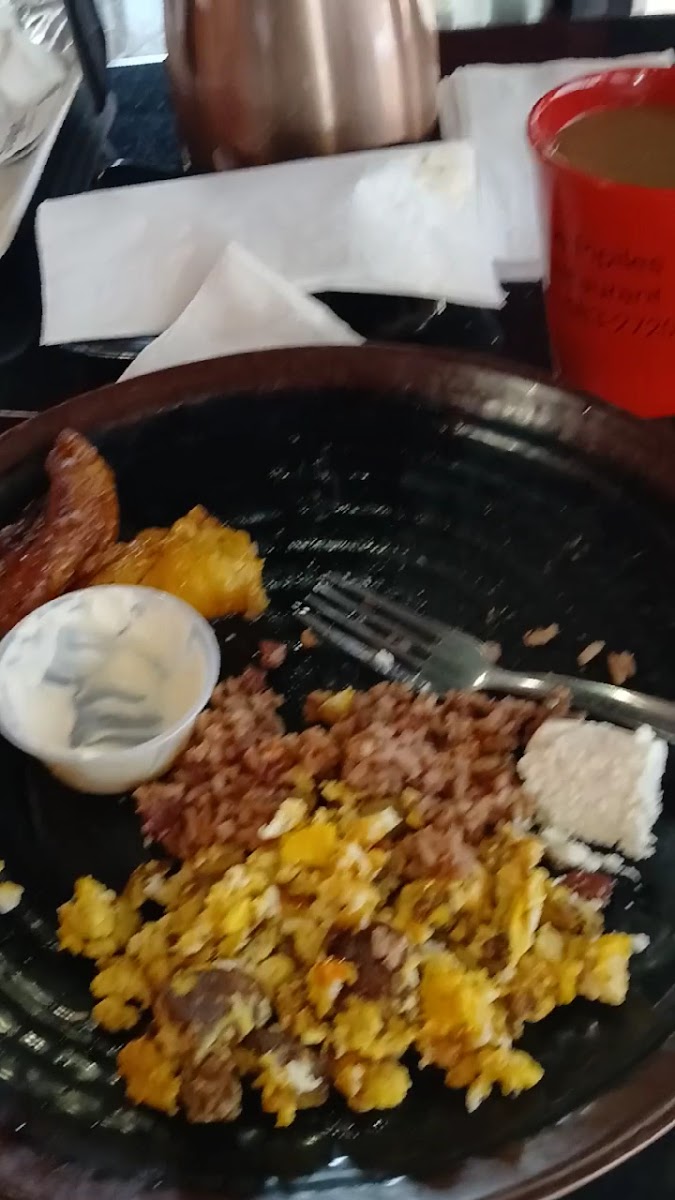 Have been here before and returned because their food is tasty. My favorite selections are the Salvadoran plates and I do enjoy their other options as well. Todays fave was: Desayuno Paraíso The dish is big, has a little bit of everything, comes with fresh hand made corn tortillas . Place was packed but did not affect service, servers were nice and friendly. Coffee was tasty too