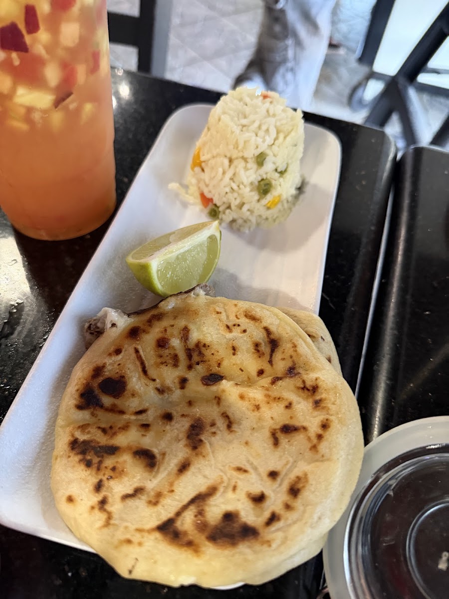 Great authentic Salvadoran food and great service. Really liked the music they were playing too. Restrooms were clean, highly recommend the atole de elote (not pictured). Got the Combinado with a loroco pupusa and tamale de elote, pupusa was great not greasy, tamale was ok. The other dish we got was the Desayuno Paraiso, everything was great the beans were a tad on the dry side though.