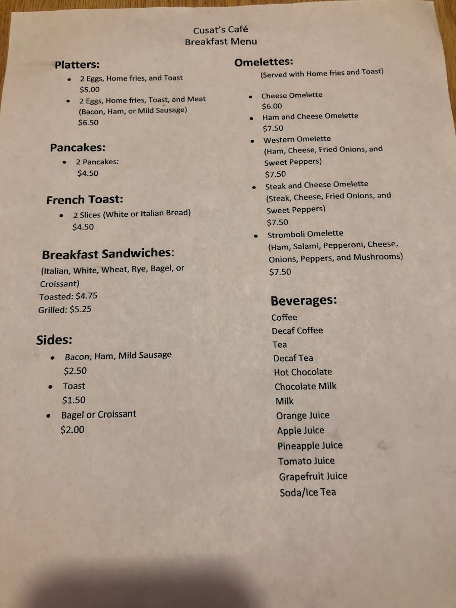Steak patty, cheese, sweet peppers, and fried onions. Served with home fries and toast.