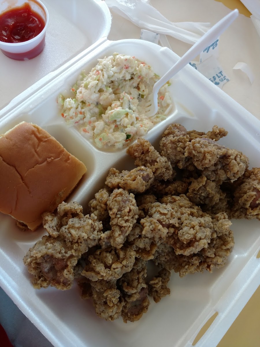 Hello my fellow Southerners are you hankering for some Southern Chow? Yeah you're hungry and you want some Baptist bird? I have been a fan of Carter's fried Chicken for some time now. We came here at 3:00 in the afternoon and the place was jumping. The atmosphere here is pure Carter's. Yeah, a repurposed place that serves good food and plenty of it. I believe people of our faiths are invited here to have some serious fried Chicken that coleslaw did not disappoint. The french fries were okay. You want iced tea? You want to put some of that imitation cherry flavor man they got gallons for you. Carter's a place to visit when you're passing through just like I was. You never been here? You need to stop n check it out!