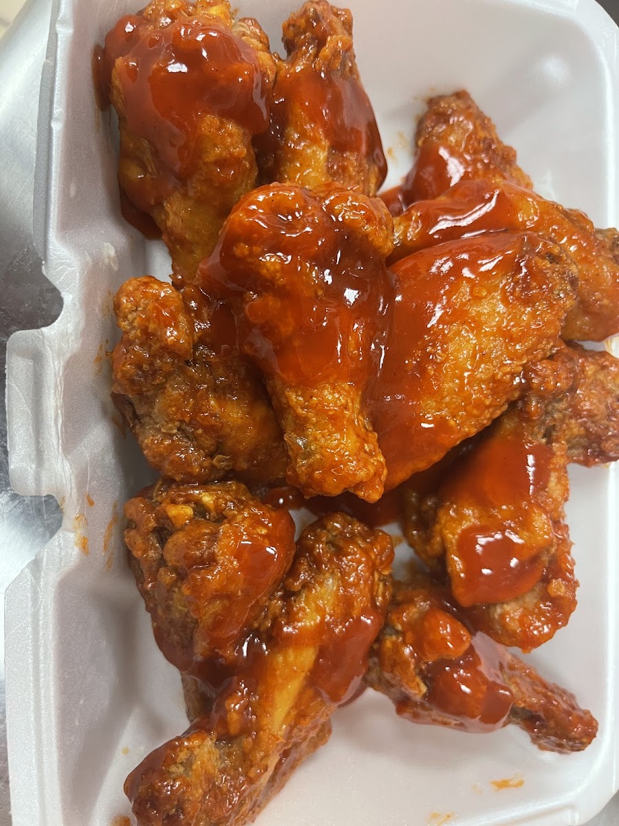 Stop in to grab something for dinner they been open for 7 months not going tell you how many times we drive past here and never seen the signs for this place....now to the food they have BBQ BEEF RIBS...yes beef and they are good I just like mines for more sauce so now I know to ask for more sauce....Next we had the sweet Chilli Buffalo wings and did they deliver on the sauce for them this how I like anything with sauce it needs a bath..lol finish off with small onion rings... Hit the spot now go checked out tell them Bluntzville Radio sent you
