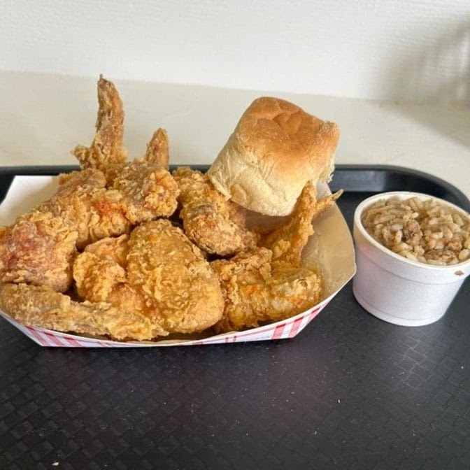 It was our first time visiting and we arrived about 25 min before they closed… they did not make us feel rushed and they offered to drop some more breasts even though it would take 15 min to cook them. We didn’t want to do that to them so we took what they had. The chicken was so juicy and the grease was fresh. I got fried okra and it was the best fried okra I think Ive ever eaten. Everything was really fresh and seasoned perfectly. We got chocolate cake for desert.it was moist and delicious we will definitely go back… oh and it was reasonably priced also!