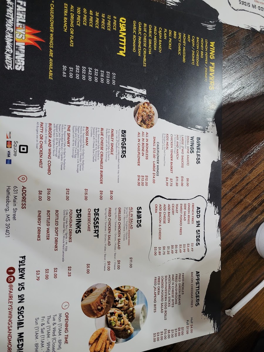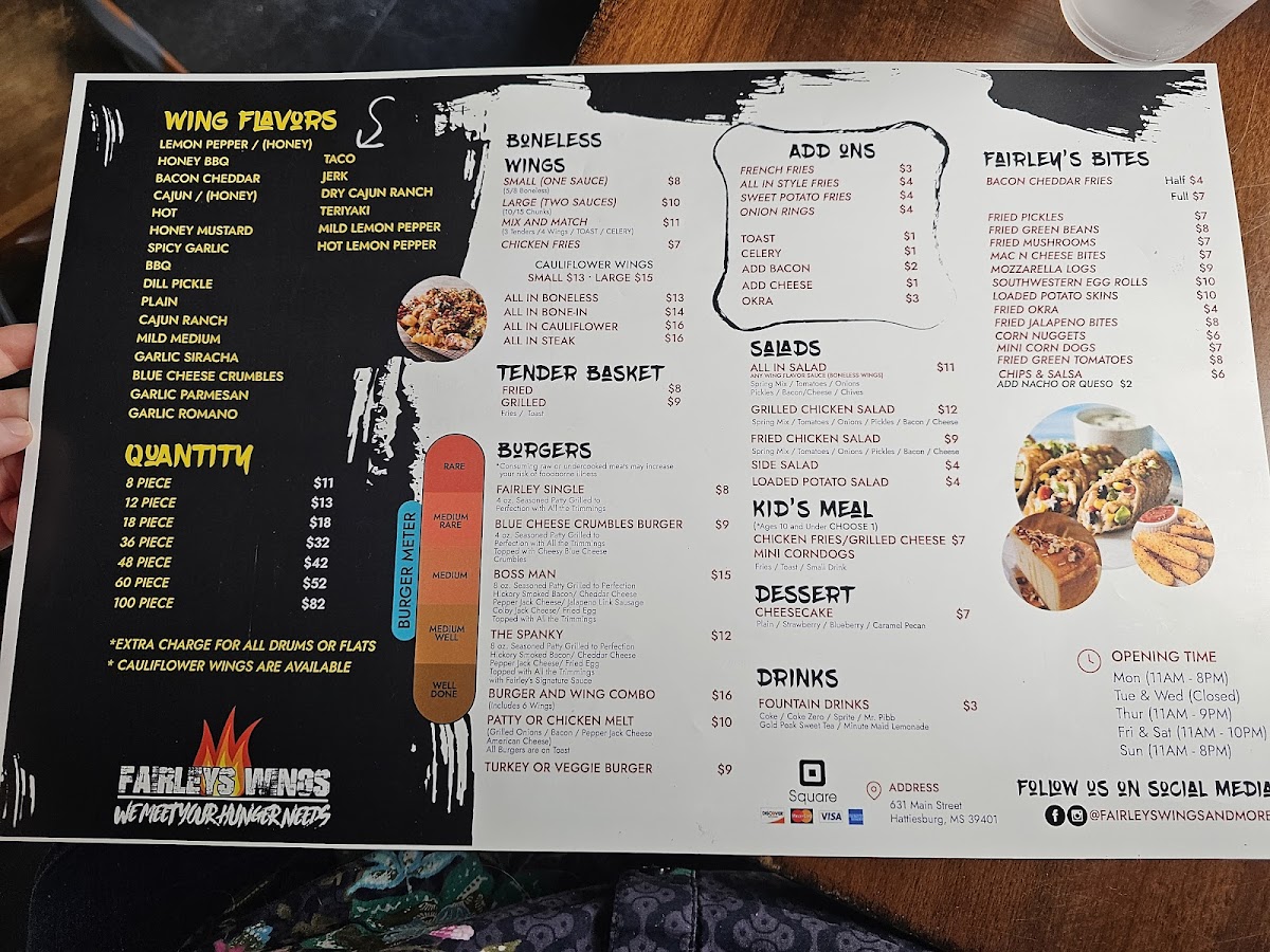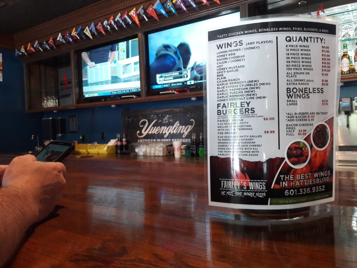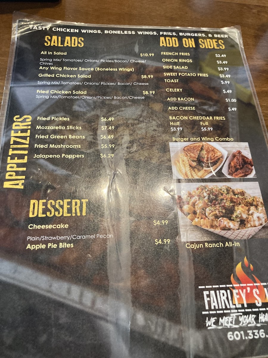 A fairley single burger and 6 wings with your choice of flavor. Add-ons for an additional charge.