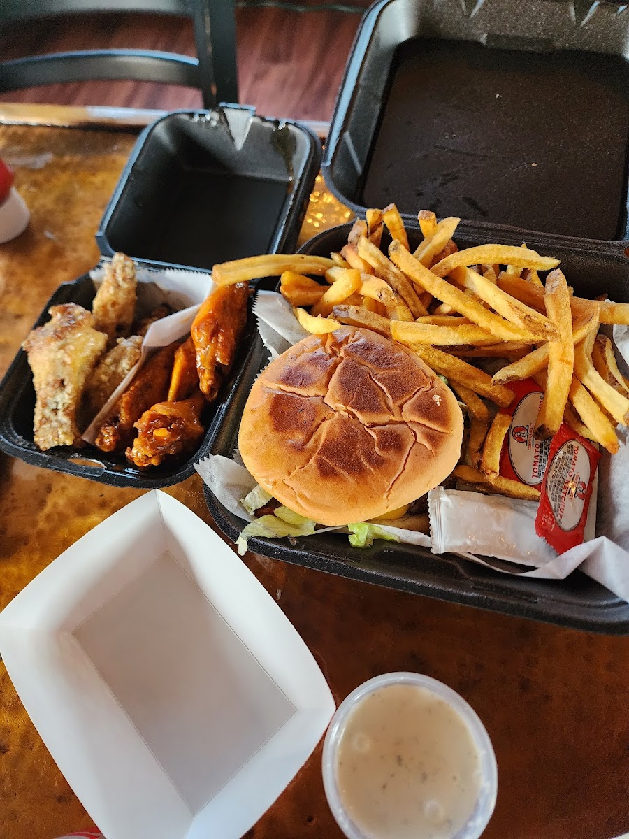 Best burgers and wings. Food is always made when order is placed, so everything is piping hot! Seating area is clean and inviting.