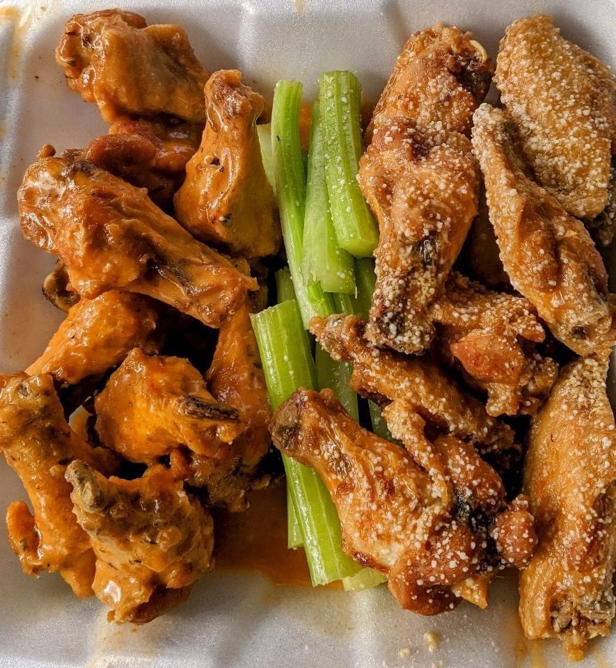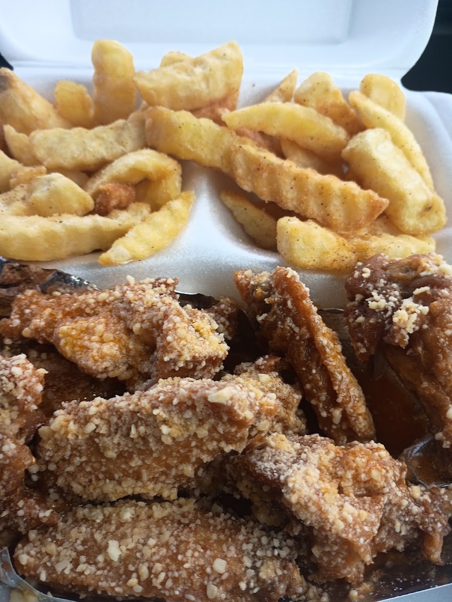 The food is prepared to order, they have my favorite wing sauce, and the owners are locals, so they know what the regular customers like to order! I want to try another flavor. This one... Parmesan & Garlic with sweet mild spicy sauce was so good.