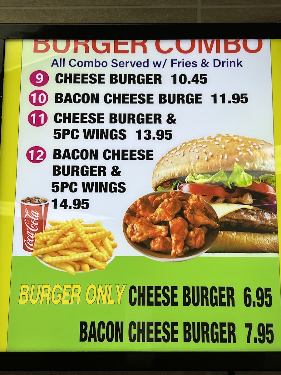Cheeseburger & 5 Pieces Wings