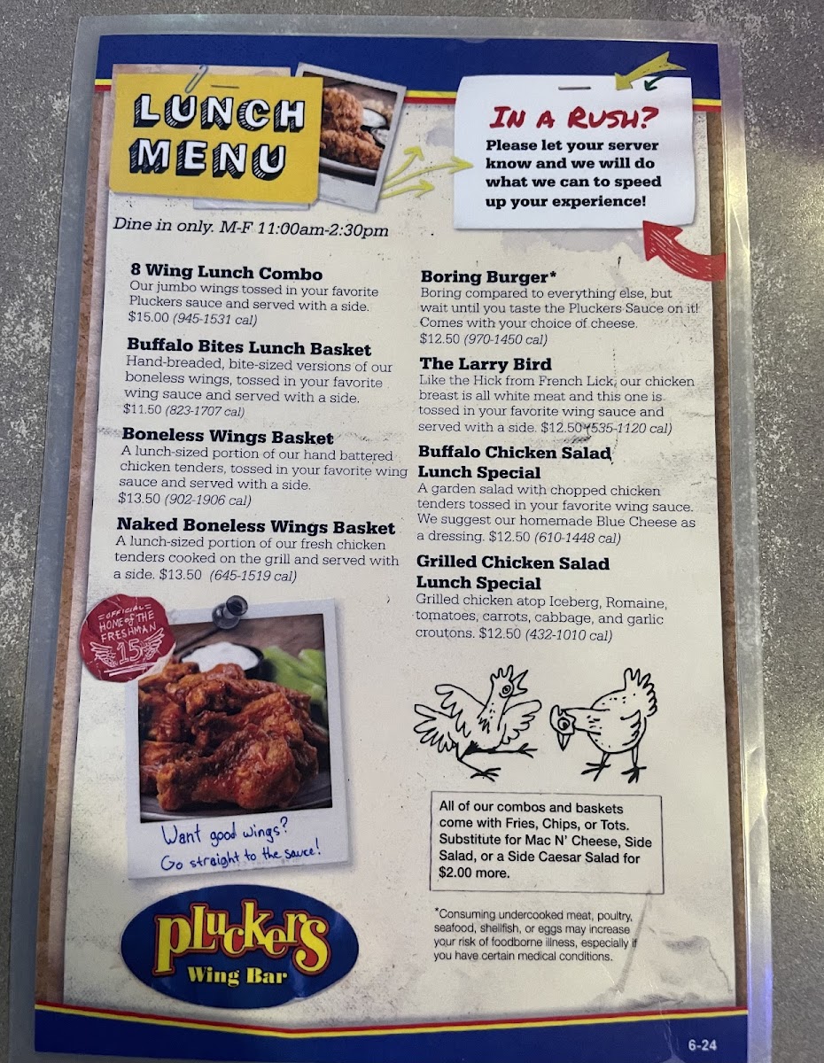 Boring compared to everything else, but wait until you taste the Pluckers Sauce on it! All of our burgers are cooked medium well. Served with your choice of side.