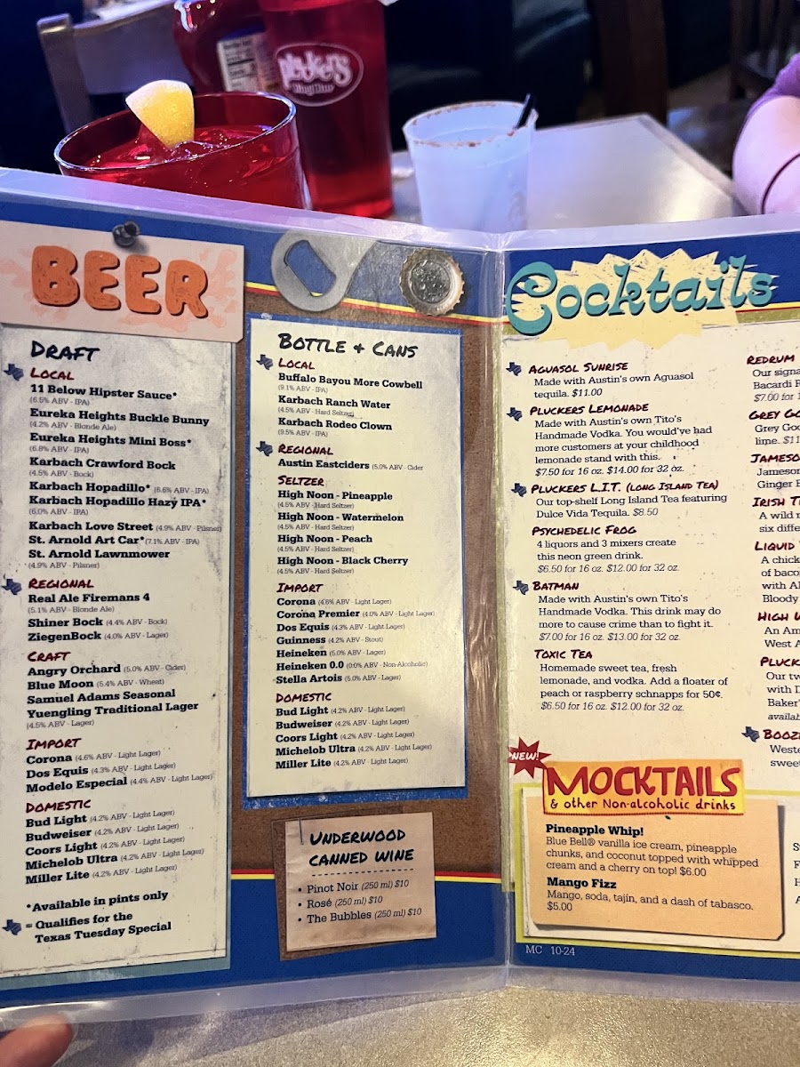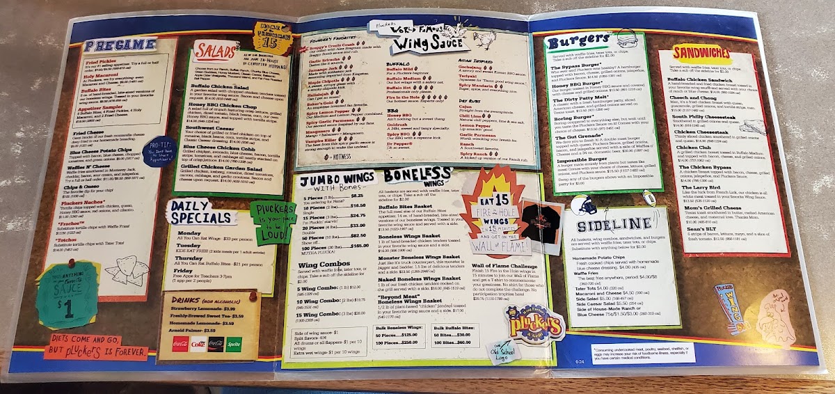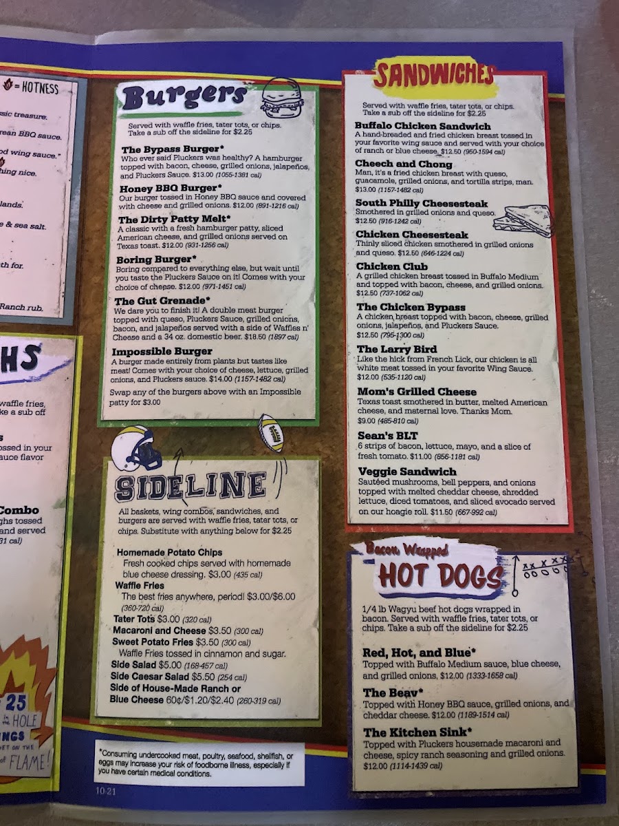 Who ever said Pluckers was healthy? A hamburger topped with bacon, cheese, grilled onions, jalapeños, and Pluckers Sauce. All of our burgers are cooked medium well. Served with your choice of side.