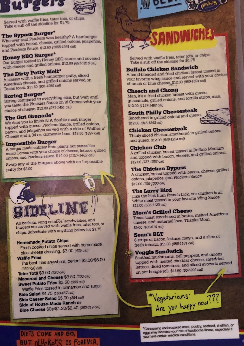 A burger made entirely from plants but tastes like meat! Comes with your choice of cheese, lettuce, grilled onions, and Pluckers sauce.