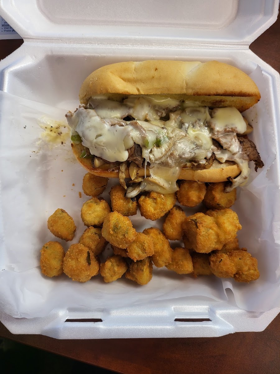 The food is good. They only give you like 10 fries. I mean, there’s hardly no fries in here. A lot of fries.
