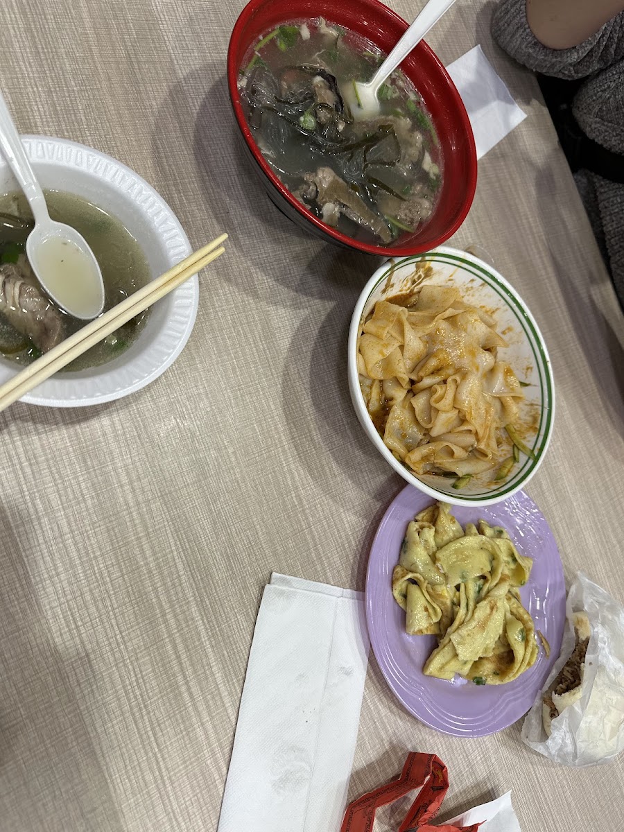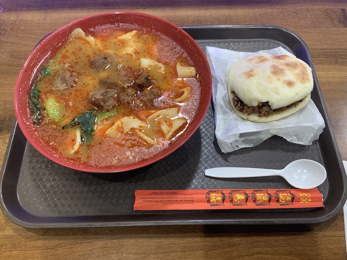 Very friendly guys at the counter. The food is so good, just like something you would get in China. The tables are in the grocery store food court and shared by all the restaurants. They can be a little dirty sometimes. I recommend doing takeout if that's off-putting. Be aware they upcharge for card, so bring cash. Some recommendations for people unfamiliar with "real" Chinese cuisine: 1. A classic chinese breakfast is youtiao (fried dough stick) dipped in soy milk. You can get both here and try that yourself. 2. Jellied tofu sounds gross but it's really a savory tofu-broth. I also love dipping the fried dough sticks into it. Make sure you ask for the Northern China savory variety... they also offer a Southern China sweet variety. 3. The pita bread in mutton soup and rougamo are Xi'an (Shaanxi) specialties. Honestly, theirs are way better than what I had in China. The lamb didn't taste gamey and was really tender. If you let the pita absorb the soup, it tastes great. 4. Their handmade noodles have just the right texture. The chewy thick centers are addictive. The texture is a little like American chicken and dumplings, but the soup is 100% traditional Chinese spices and flavor. I loved the spicy chicken noodle soup. (It is a little spicy for low tolerance though.) TLDR, go here. You won't regret. They don't show up on Yelp but they're more authentic than anything that does show up.