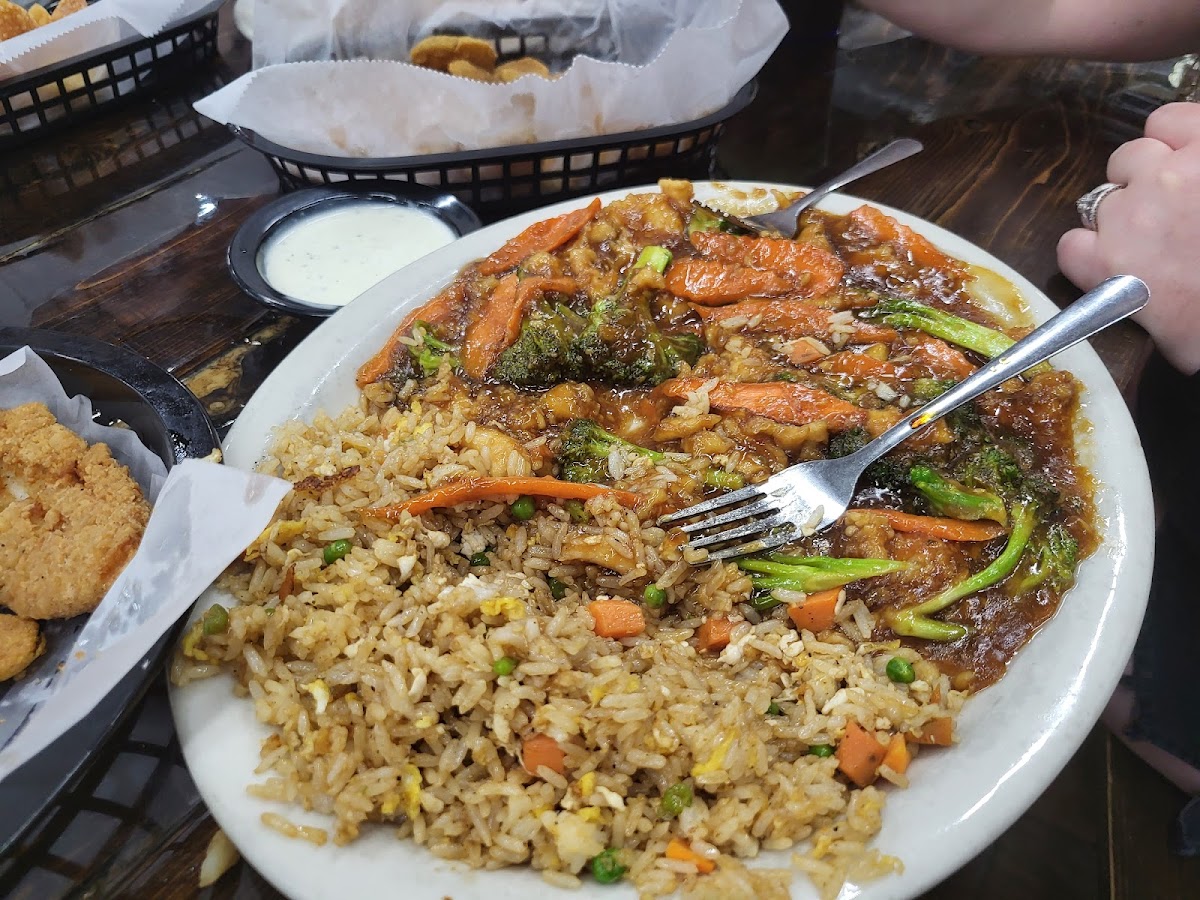 This is a place that is trying to survive at any cost. Originally an Asian Buffet Restaurant they are now a menu restaurant and gift shop. What makes this place stand out is the menu includes a Mexican selection page, an American selection page and an Asian selection page. We were offered chips and Salsa while we waited for our meals. I ordered from the American page and enjoyed the chicken.livers along with okra and corn nuggets. Portions were generous and the cost was low. 9.99 for dinner. They use large glasses which require less refills. My friend enjoyed a selection off the Asian menu and was offered the same over sixed portions with rice . 9.99 was the cost for his Meal also. The food quality is great. Prices more than fair. Only Jab I'd take is the service was pretty much here is your drink and here is your food. Not a whole lot of checking up for refills or needs. Had to ask the hostess for a refill on my water. That said, I think they are doing what it takes to survive and hopefully thrive in the Corning food service landscape. I honestly hope they make it as this place was a pleasant surprise.