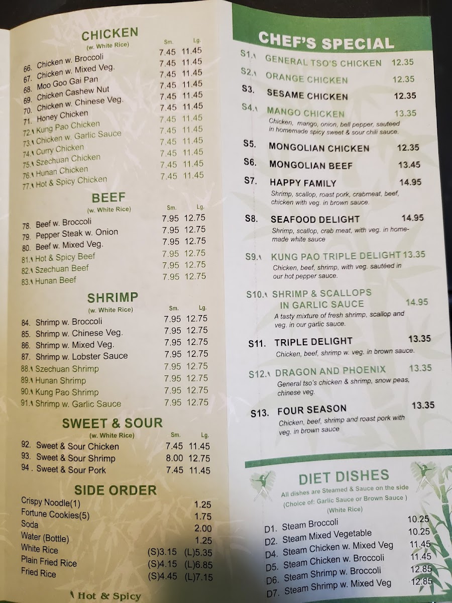 Served with steamed rice or fried rice and egg drop soup or hot sour soup.