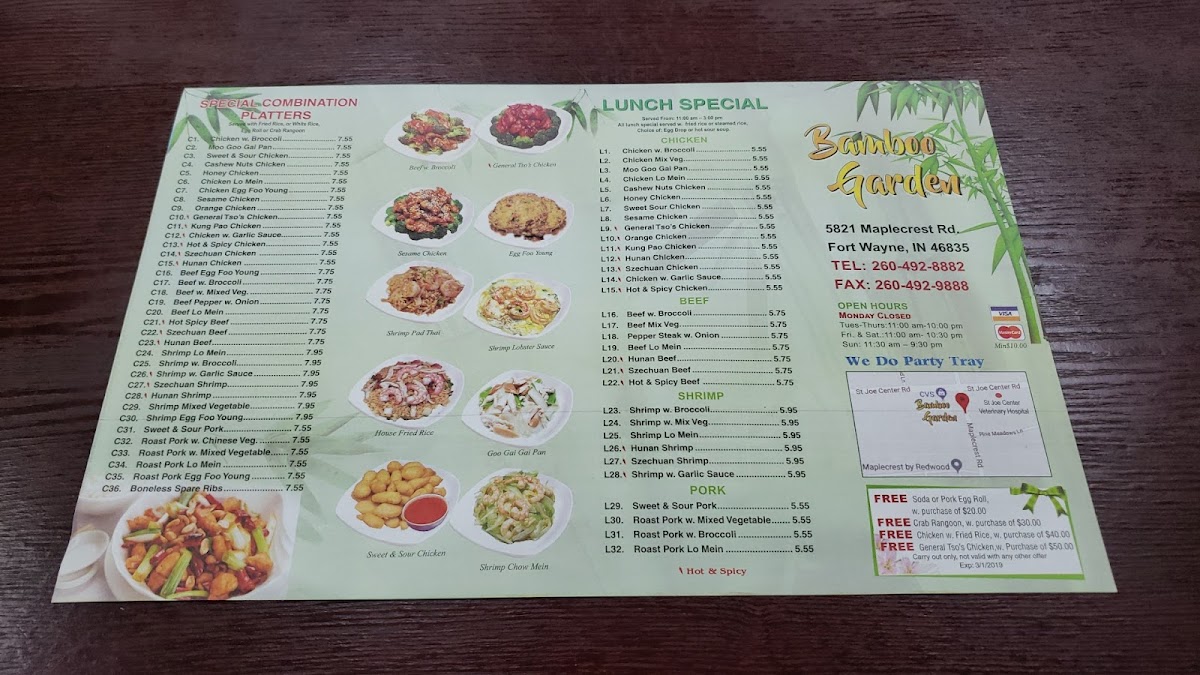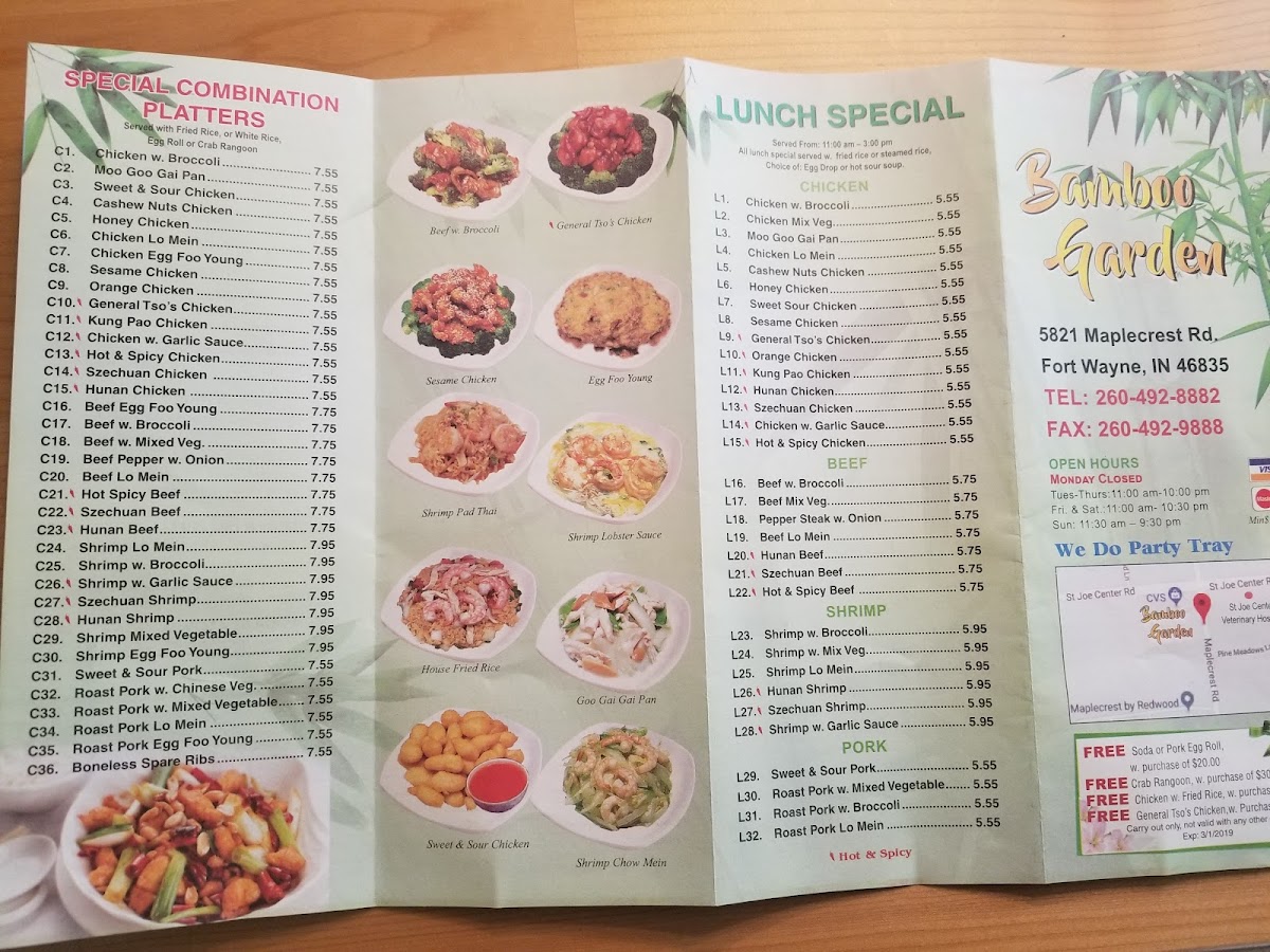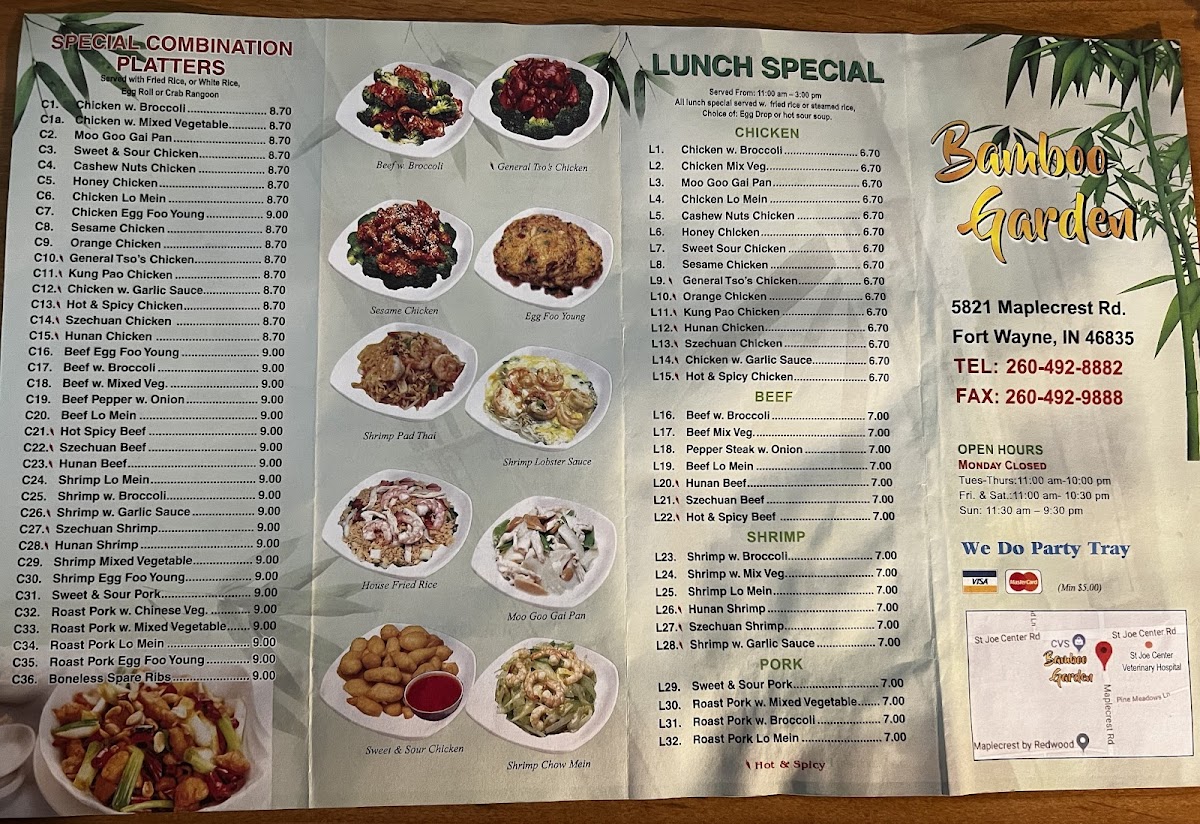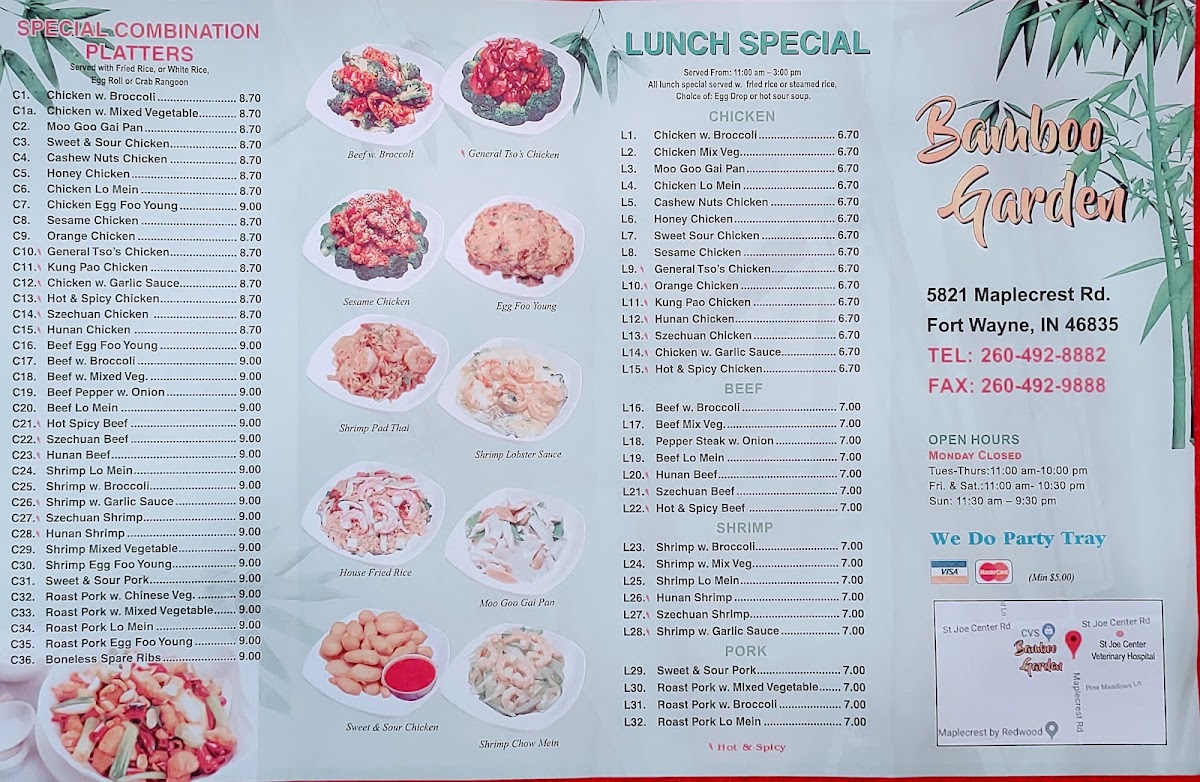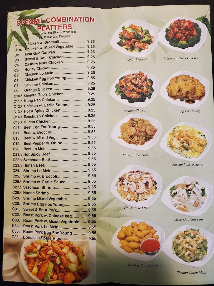 Served with white rice or fried rice and one egg roll or two crab rangoons.