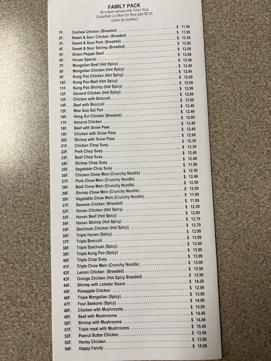 Celery, mushrooms, water chestnuts, bamboo shoots, carrots, & vegetables in brown sauce. Topped with Chow Mein.