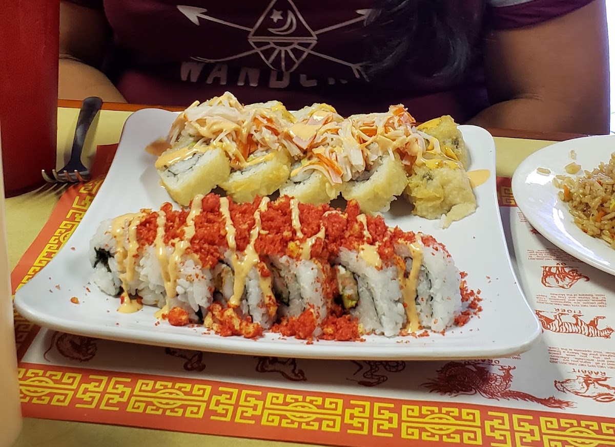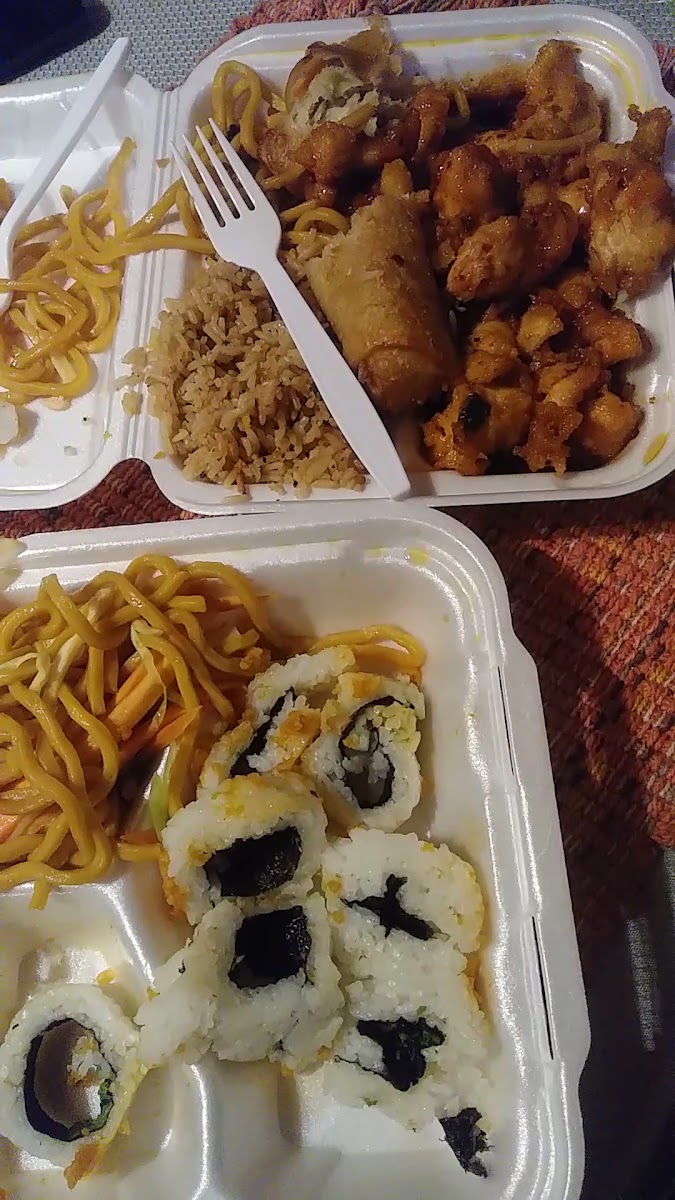 First time ordering from here and food was delicious. Got ourselves Express plates and Sushi rolls and they were perfect. Sushi rolls all come with a side of either lomein, fried rice or steamed rice and two small cups of soy sauce and spicy mayo. The Express plates I got were Sesame Chicken with lomein and fried rice and the other plate was Broccoli Shrimp with the same sides. All those plates were delicious so we will definitely order from here again! Todo super delicioso y bien servido. Volveremos de nuevo a ordenar de aquí y mas porque esta cercas de mi casa.