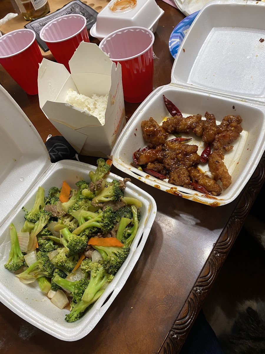 Our first time there. We got takeout to eat up at the Benedictine brewery. The bag of containers was extremely heavy. I thought they were serving us lead lol. When I opened the container I realized why it was so heavy. This thing was packed with food. Lots of chicken and broccoli for the broccoli chicken. My Sichuan chicken had lots of vegetables and chicken. We also ordered the noodles with tofu. Tofu was really nice + chewy not mushy. Broccoli was fresh and not overcooked. The chicken had nice flavor and the two different chicken dishes had a distinct flavor profile. The Sichuan chicken head enough heat to make it enjoyable but not too hot. My wife and I now have leftovers for lunch today and again tomorrow. That's how much food we got for how little we paid.